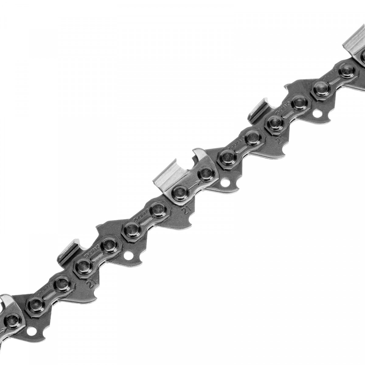 - Долговечность — благодаря чипперному, т.е. серпообразному типу режущего звена цепь легко затачивается и практически не загрязняется.
