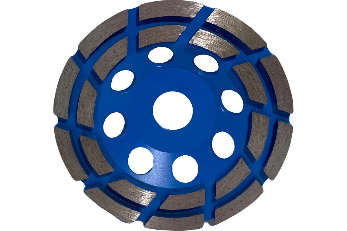 Чаша алмазная двухрядная 125мм, сегментированная применяется с УШМ и используется для грубой обработки бетонных, каменных, кирпичных, мраморных и гранитных поверхностей. Позволяет осуществлять зачистку швов, стыков, неровностей, удаление наплывов. Придает поверхности шероховатость, для улучшения ее адгезивной способности перед нанесением строительных растворов. Предназначена для профессионального и бытового применения.Чаша демонстрирует высокие результаты благодаря увеличенной концентрации алмазов в рабочем слое и сбалансированной связке. Сегменты рабочей части расположены в 2 ряда, поэтому насадка обладает высокой производительностью и снимает толстый слой материала