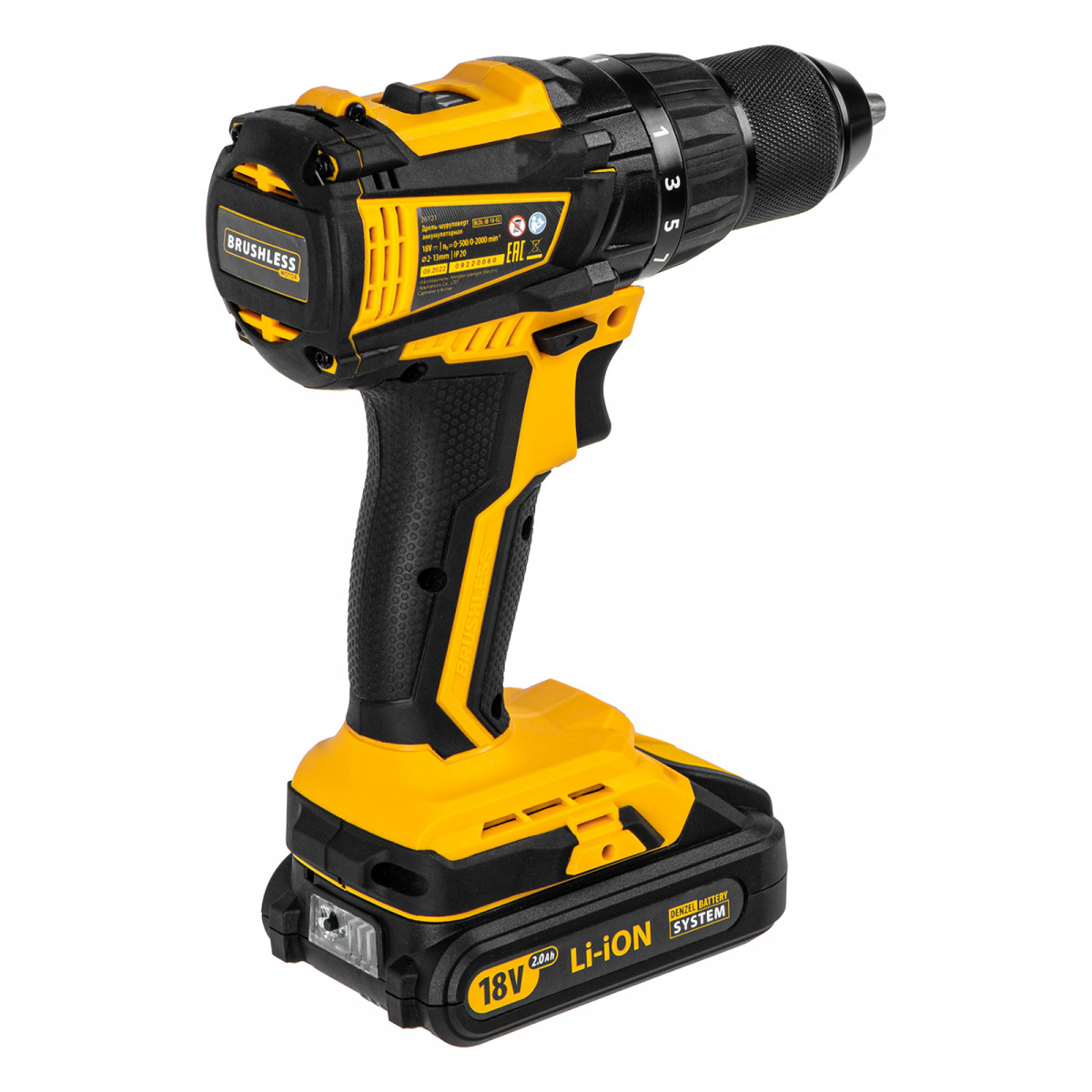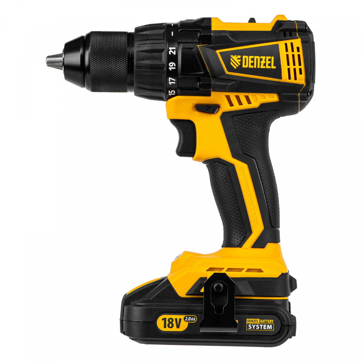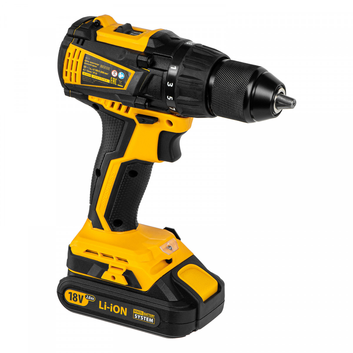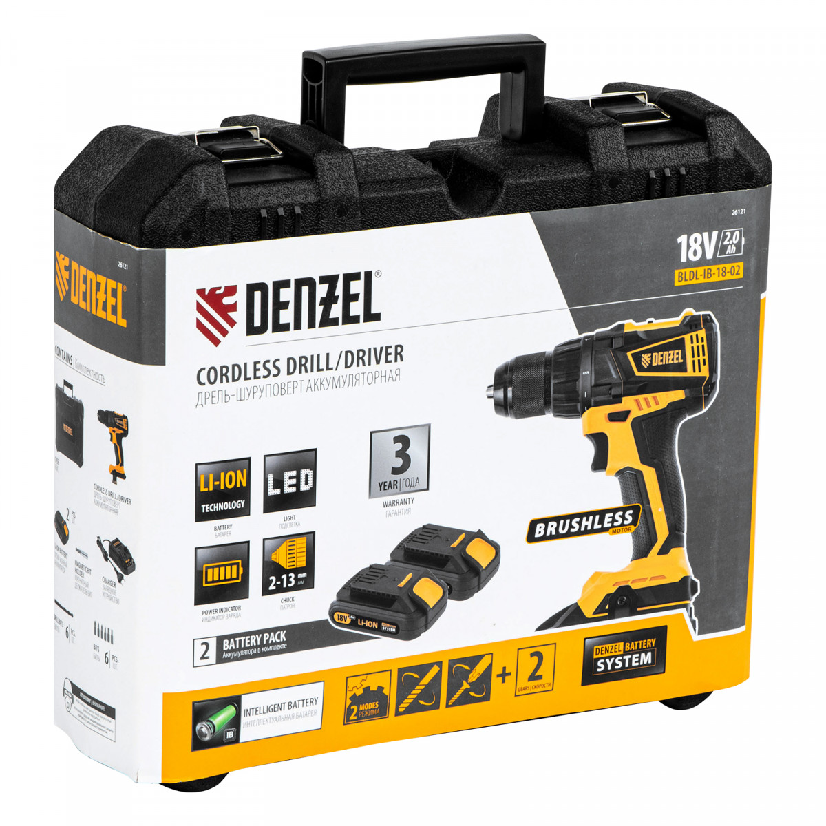 Дрель-шуруповерт аккумуляторная, бесщет. BLDL-IB-18-02, Li-Ion, 18 В, 2 акк. Denzel