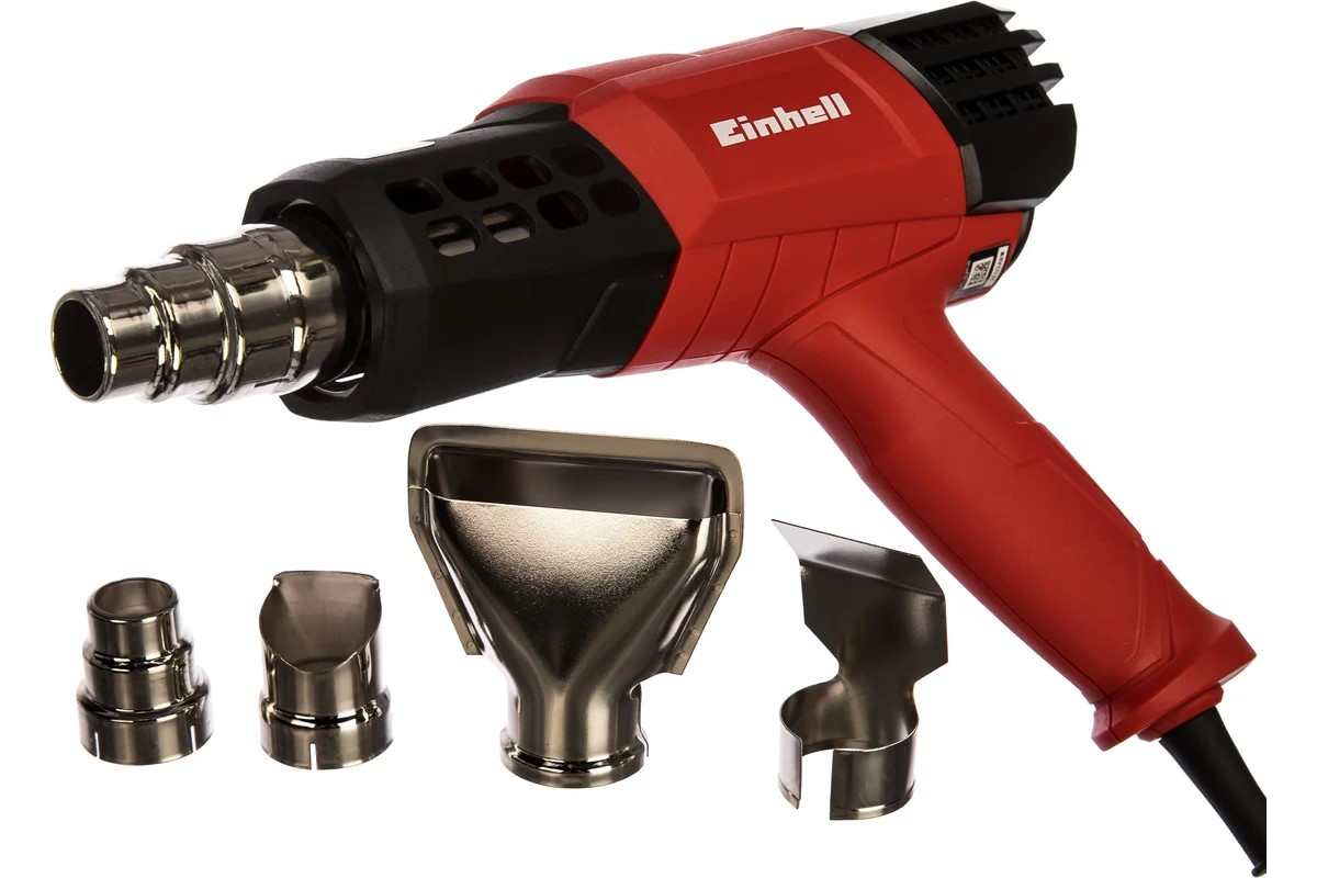 Фен Einhell используется для оттаивания замерзших труб, для удаления лака с металлических, деревянных поверхностей. Температуру можно регулировать с помощью специального колесика. В комплект входят 4 насадки, что позволяет приступать к работе сразу после покупки. ПреимуществаМощный двигатель - для высокой производительности;Регулировка температуры;Вентиляционные отверстия - для охлаждения двигателя и долгого срока службы инструмента;