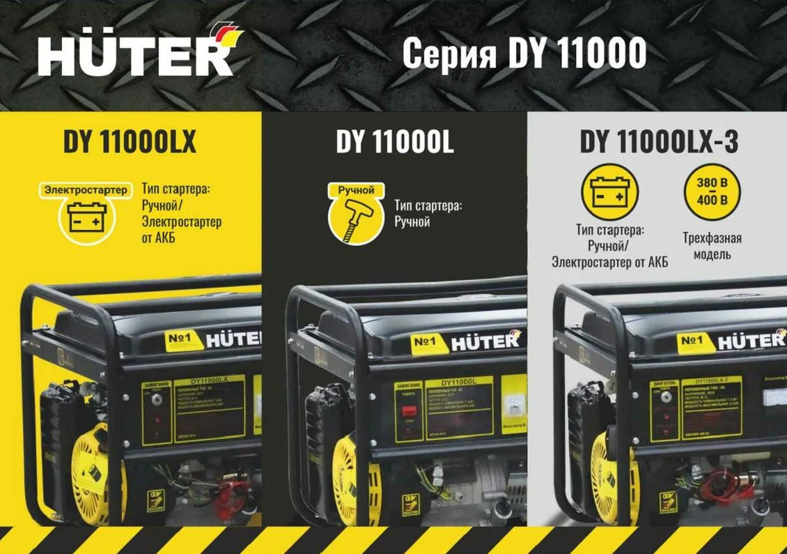 Бензогенератор HUTER DY11000L имеет защитные системы от перегрузок и коротких замыканий. В нем также реализована функция защиты от низкого уровня масла, которая заключается в том, что его попросту невозможно запустить, если уровень будет ниже допустимого. Генератор надежный, экономичный и простой в эксплуатации. Его силовой агрегат относится к категории двигателей с повышенным рабочим ресурсом, есть многофункциональный дисплей. В устройстве имеется регулировка оборотов двигателя, которая способствует экономии топлива. Возможна комплектация колесами и ручками – опционально.
