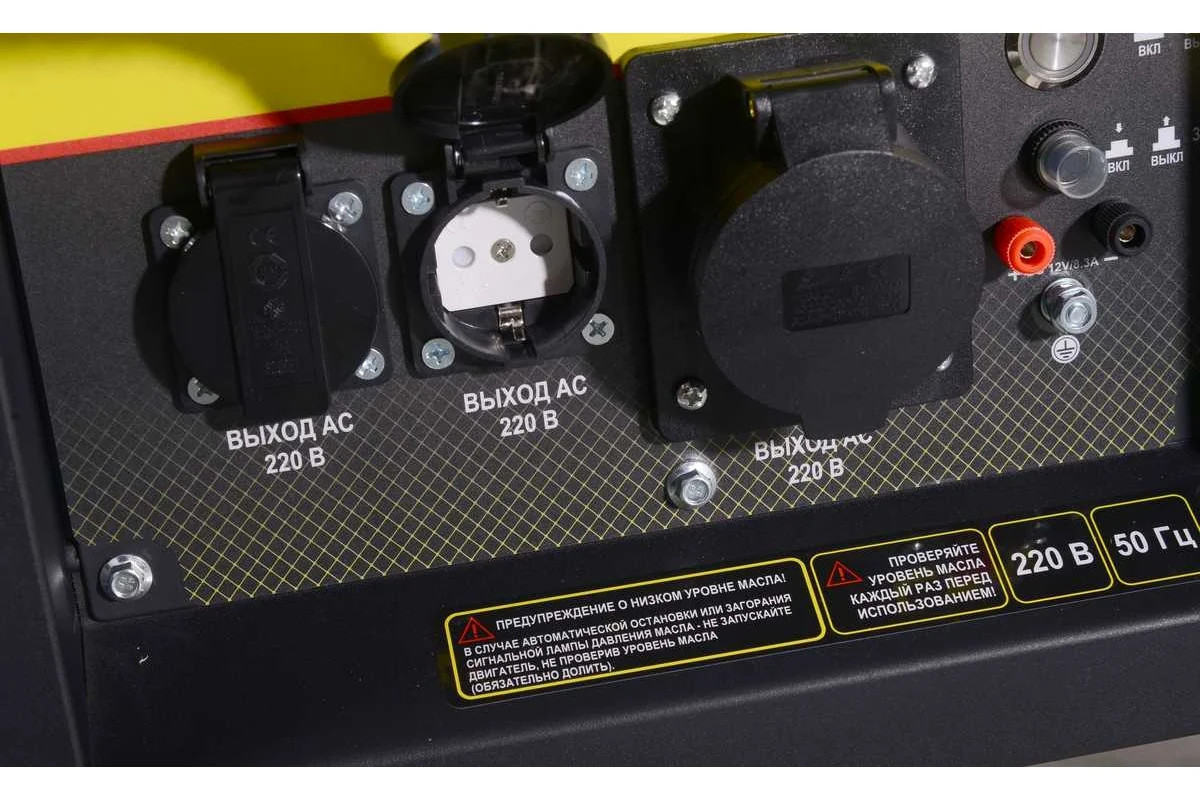 - Две розетки, 220В/16А и 400В/32А, выход питания постоянного тока 12 В и клемма заземления