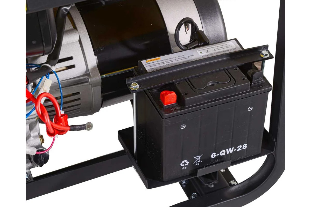 Дизельный генератор данной модели относится к переносным электростанциям, но его вес составляет 114,8 кг. Комплектуется комплектом колес для удобства перемещения. Запускается от ручного и электростартера, работающего от аккумулятора 12 В. Емкость для смазочной жидкости вмещает 1700 мл. Благодаря этому, генератор Huter LDG 7000LXА может работать длительное время без дозаправки.