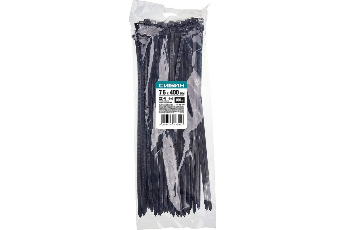 Хомуты-стяжки нейлоновые 7,6 х 400 мм черные СИБИН 100шт