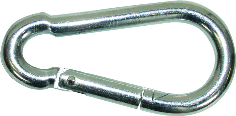 Металлический стержень грушевидной формы. Предназначен для быстрого соединения нескольких предметов имеющих петли. Используется для страховки при работах на высоте. Снабжен пружинной муфтой исключающей самопроизвольное открытие карабина.