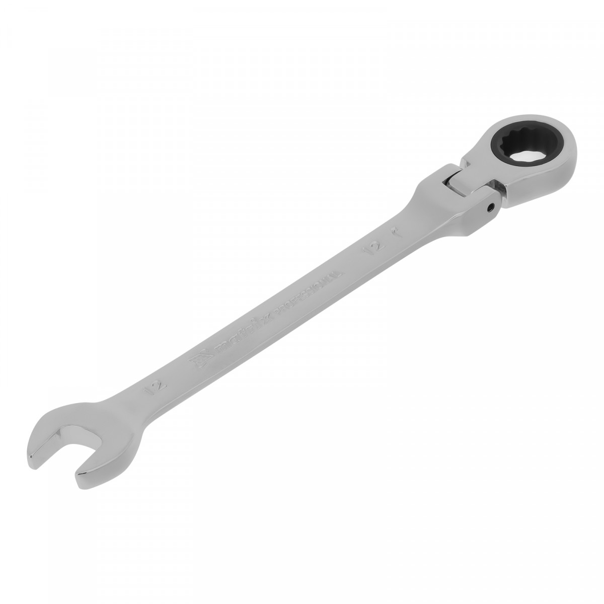 Ключ комбинированный трещоточный, 12 мм, CrV, шарнирный, зеркальный хром Matrix Professional