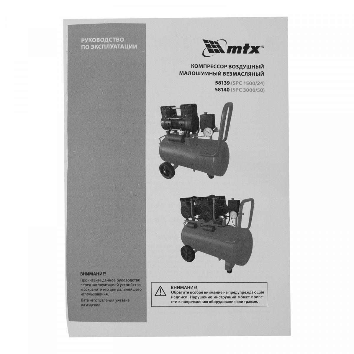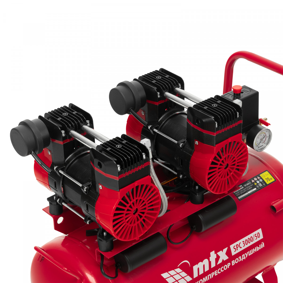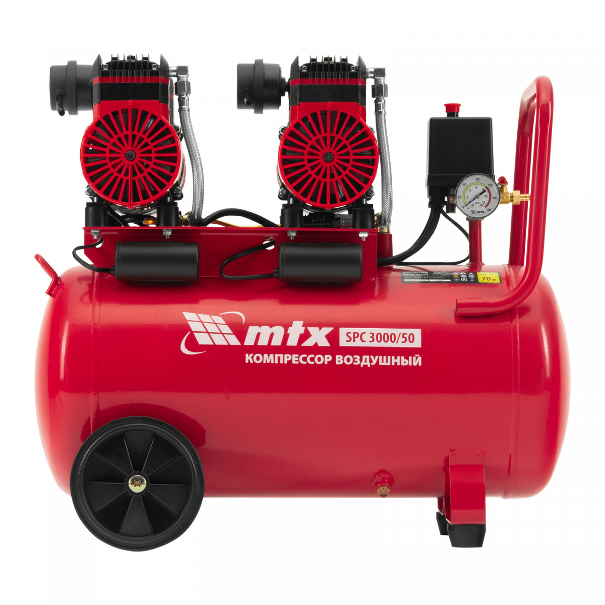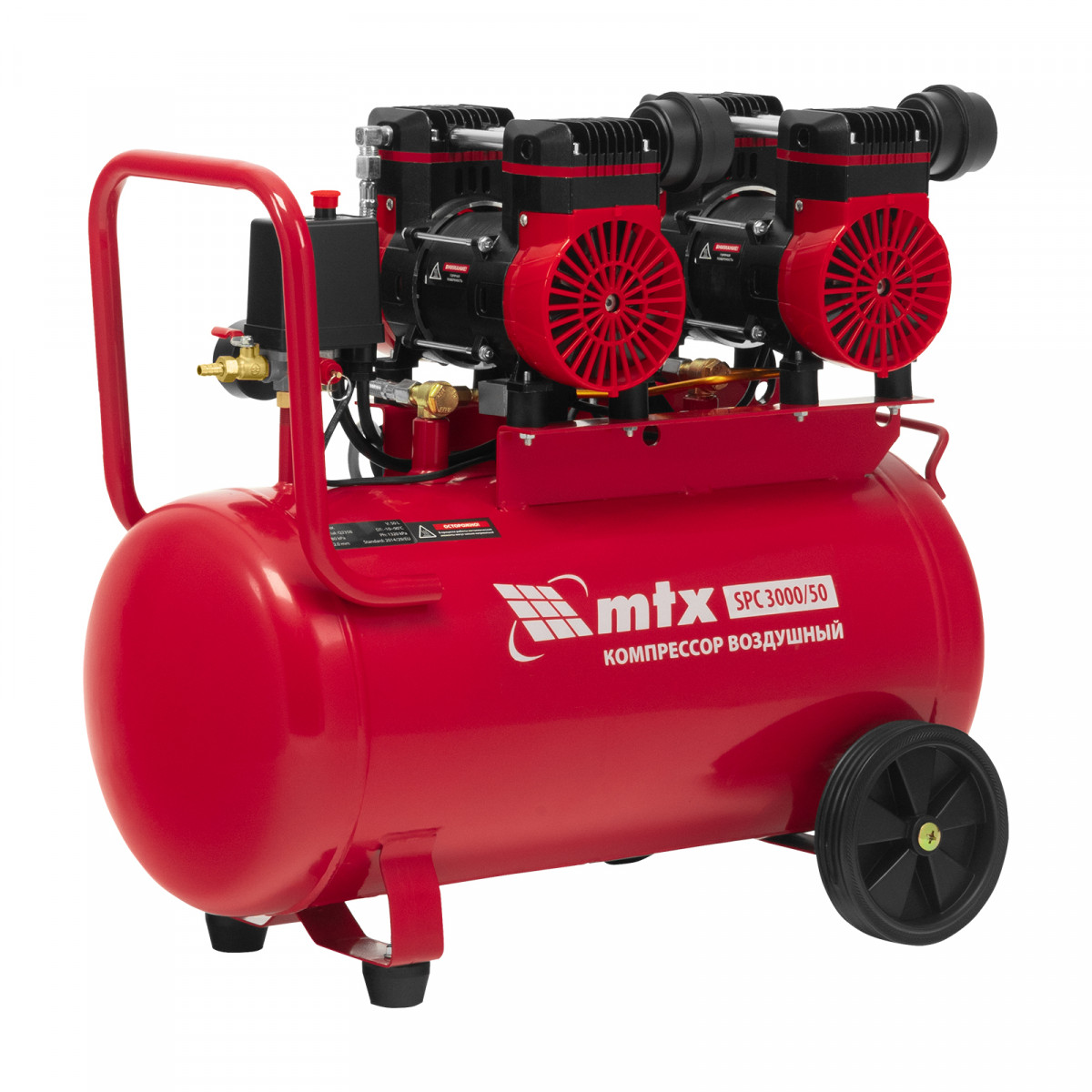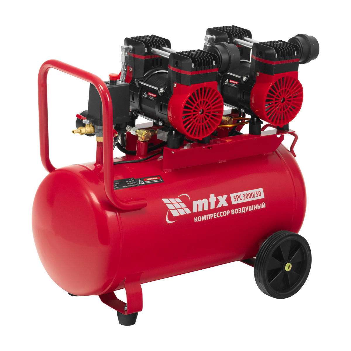 Компрессор безмасляный малошумный SPC 3000/50, 3000 Вт, ресивер 50 л, 520 л/мин// MTX
