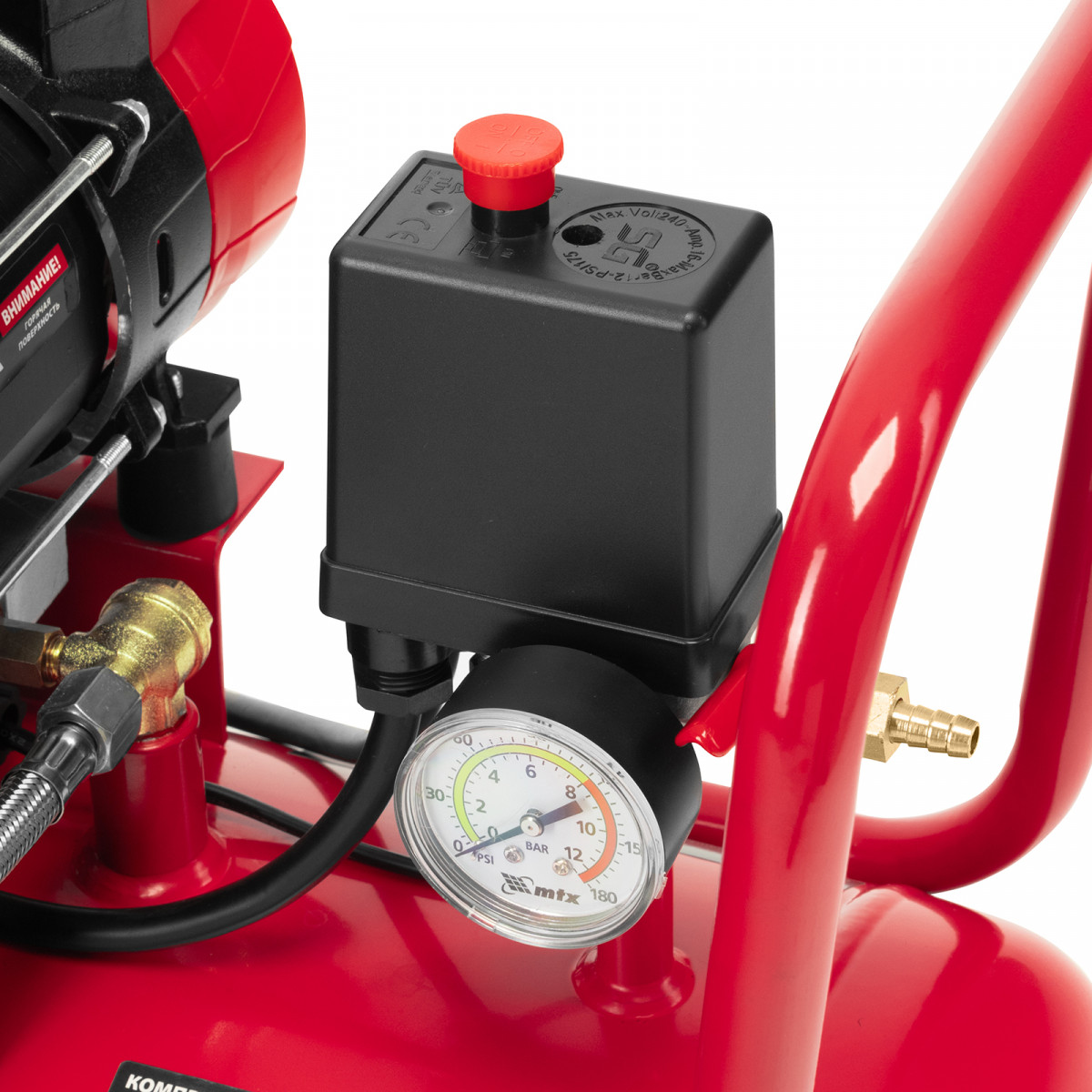 - Автономная работа — прессостат осуществляет автоматический контроль давления воздуха в ресивере, запуская и останавливая компрессор при необходимости.