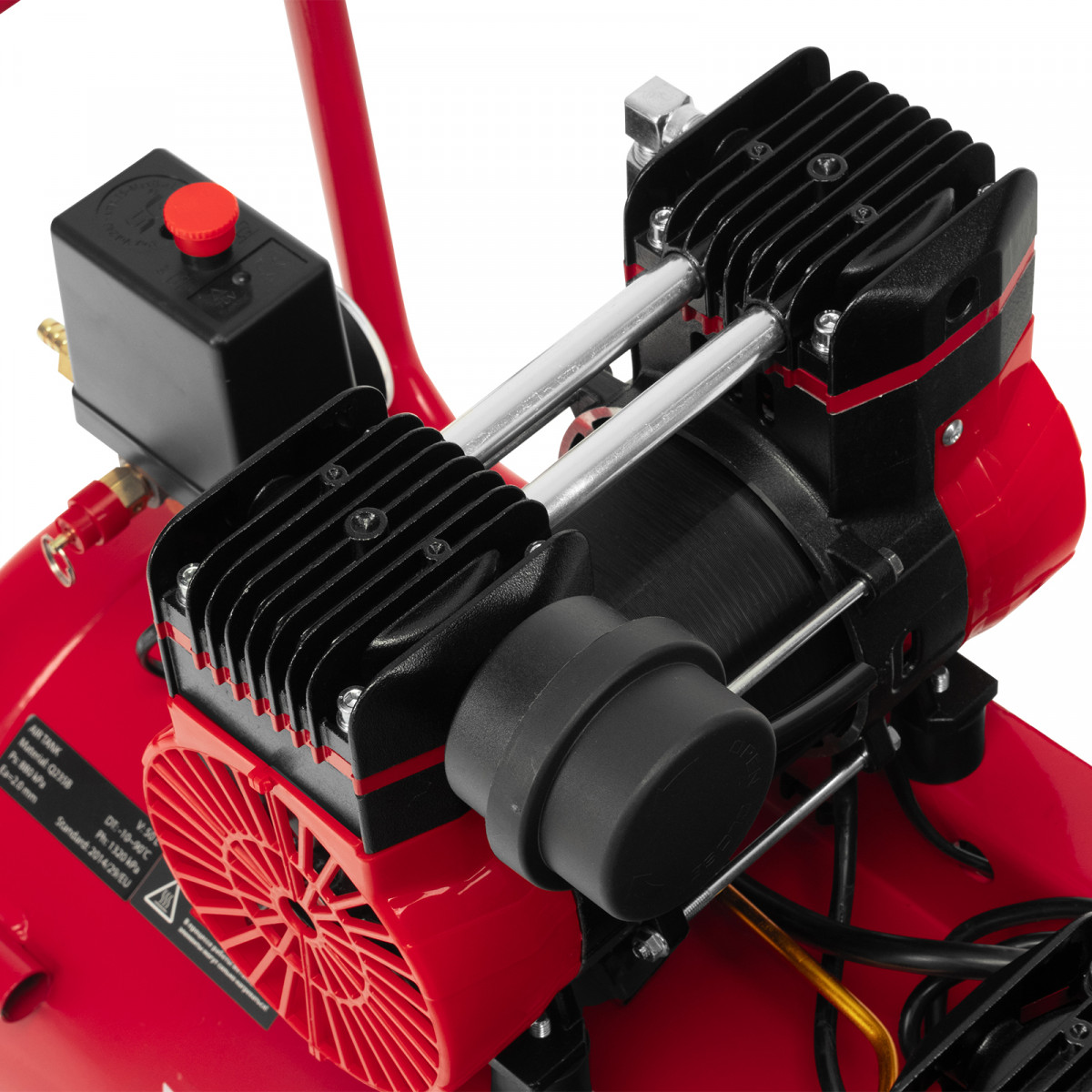 - Мобильность — благодаря транспортировочной рукоятке и колесам компрессор удобно перемещать по рабочей площадке.