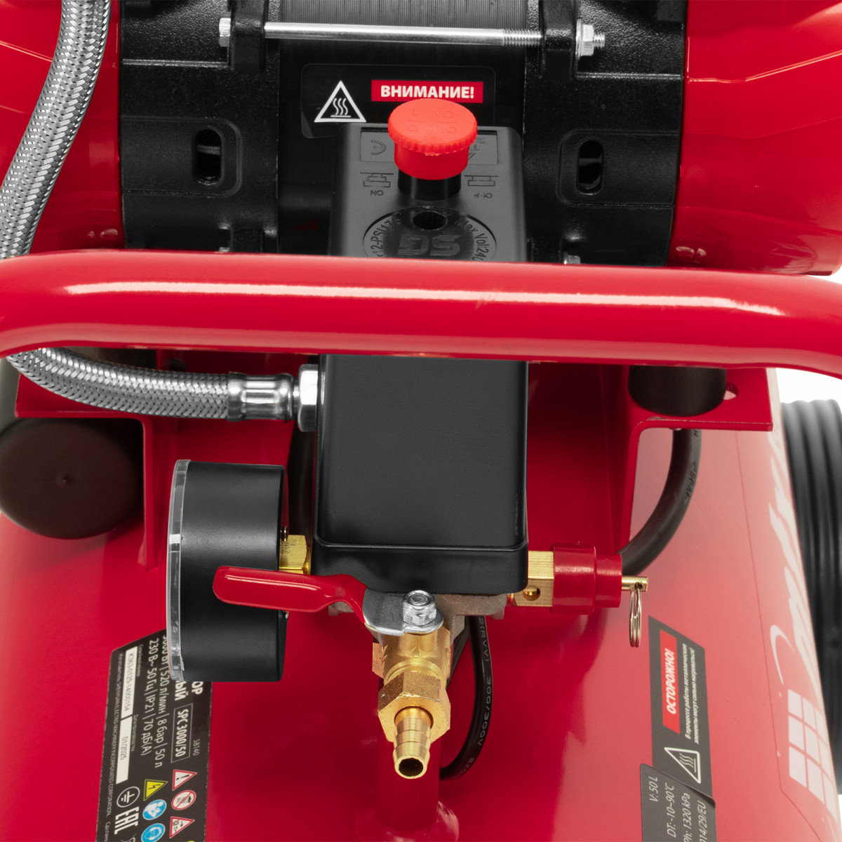- Удобное использование — производитель предусмотрел манометр для отслеживания давления сжатого воздуха.