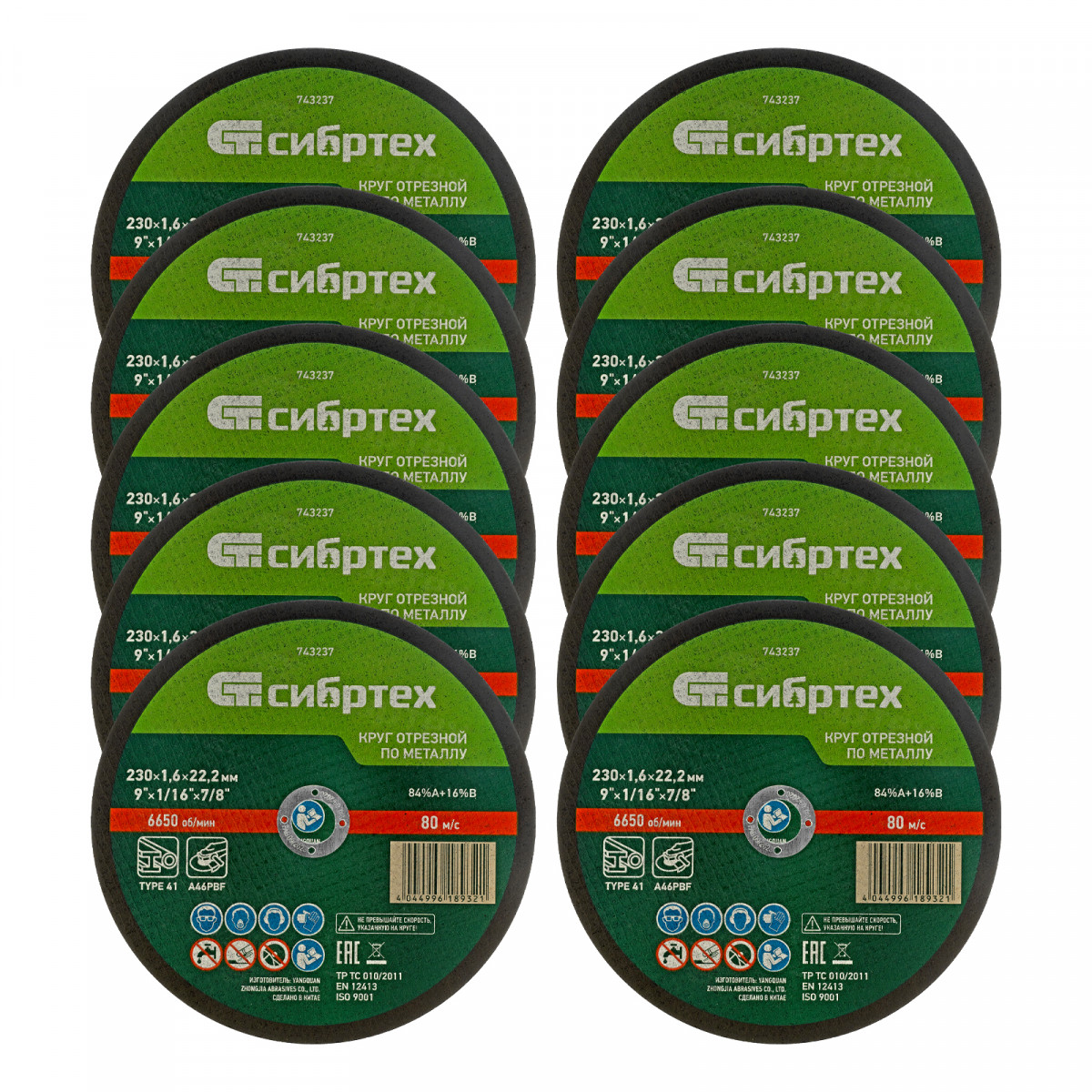Круг отрезной по металлу, 230 х 1,6 х 22,2 мм, 84%A+16%B, в пленке, 10 шт Сибртех