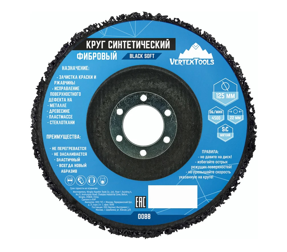 Круг шлифовальный синтетический фибровый черный VERTEXTOOLS