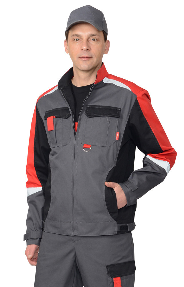 Куртка летняя Фаворит-Мега серая с красным черная СОП Тк. Rodos