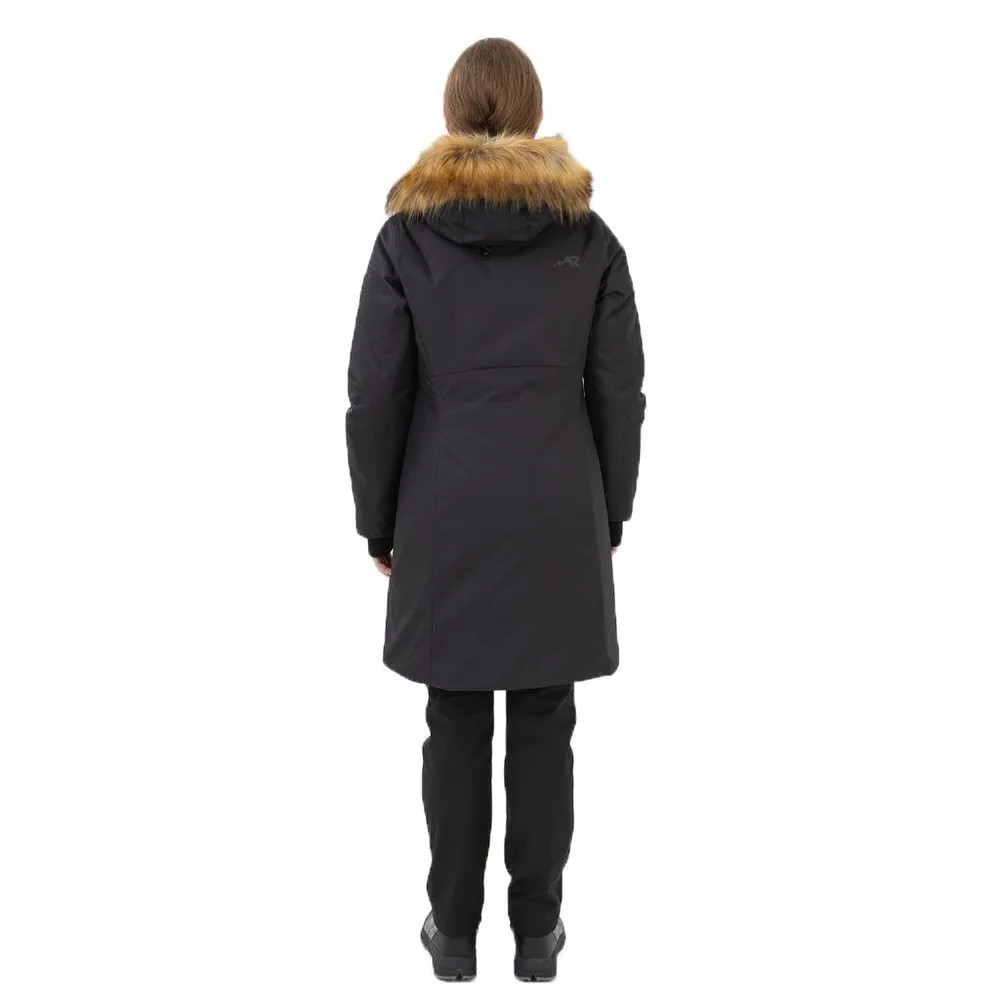 Функциональные особенности: Температурный режим – до -25 ˚С Конструктивные особенности: Покрой, посадка – изделие плуприлегающего силуэта, умеренного объема Длина изделия – до линии коленей Герметизация – частичная Водонепроницаемые молнии - да Капюшон – труба Утяжка капюшона - да Регулировка капюшона по высоте - да Воротник – стойка Ветрозащитная планка - да Застежка – на молнии под пластроном Регулируемые манжеты - да Рельефные швы – на полочке, на спинке Количество карманов - 5 Карман под планкой - да Светоотражающие элементы - да Ткань: курточная мембранная (100% ПЭ), 10000/10000, плотность 185 г/мкв. Утеплитель: тинсулейн термо, плотность 250 г/мкв. Подкладка: ткань подкладочная (100% ПЭ), трикотажное полотно (100% ПЭ). Опушка: искусственный мех.