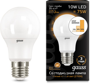 Лампа светодиодная GAUSS LED step dimmable 10Вт E27 4100К
