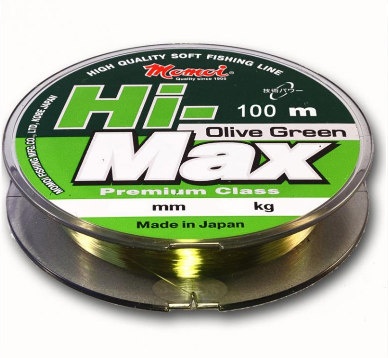 Универсальная рыболовная леска Hi-Max Olive Green от Momoi Fishing для всех видов ловли.