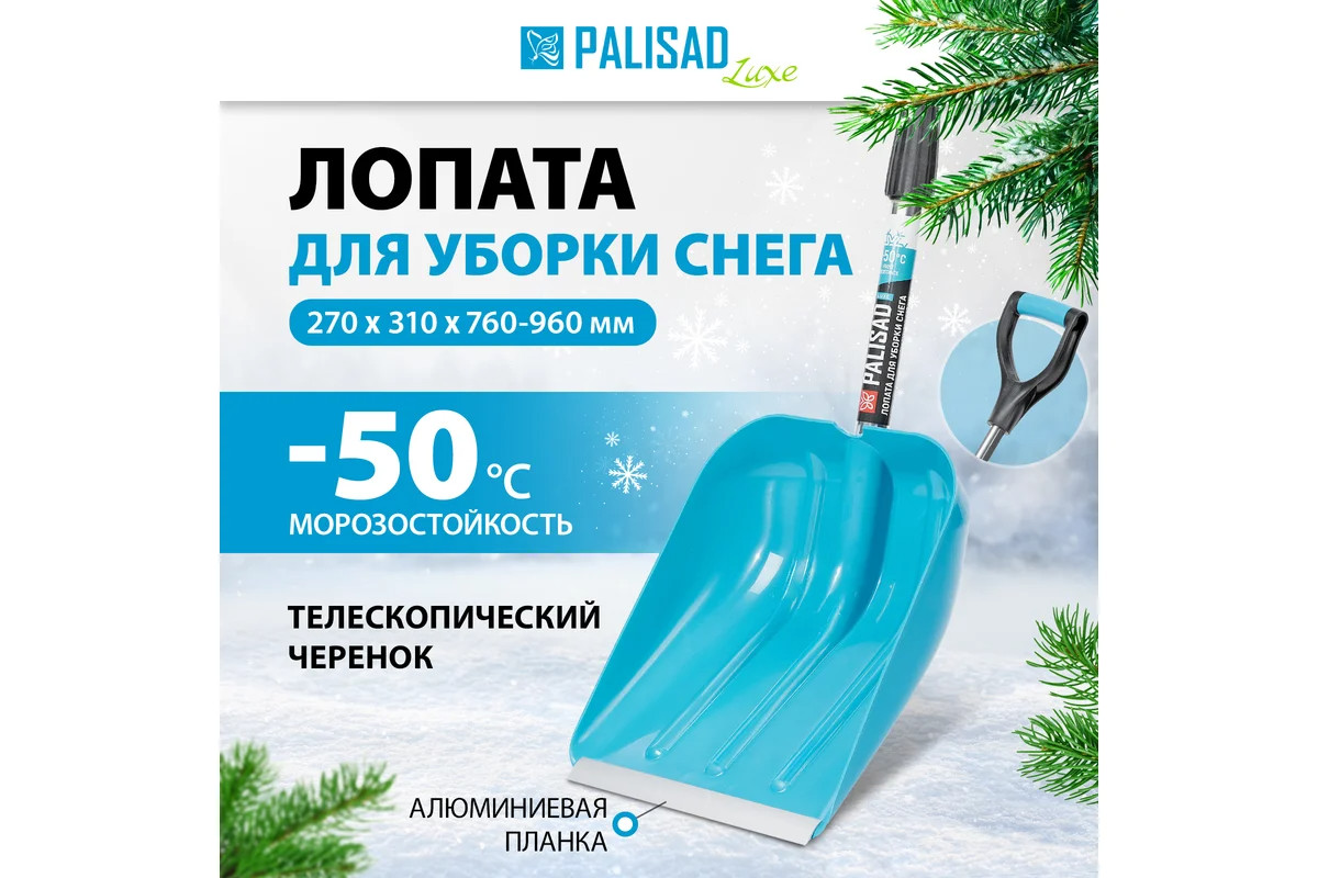 Лопата для уборки снега полипропилен 270х310х760-960 мм телескопический черенок LUXE Palisad