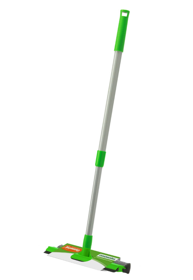 Телескопический черенок окномойки позволяет быстро и легко вымыть окна гостиных, лоджий, балконов.