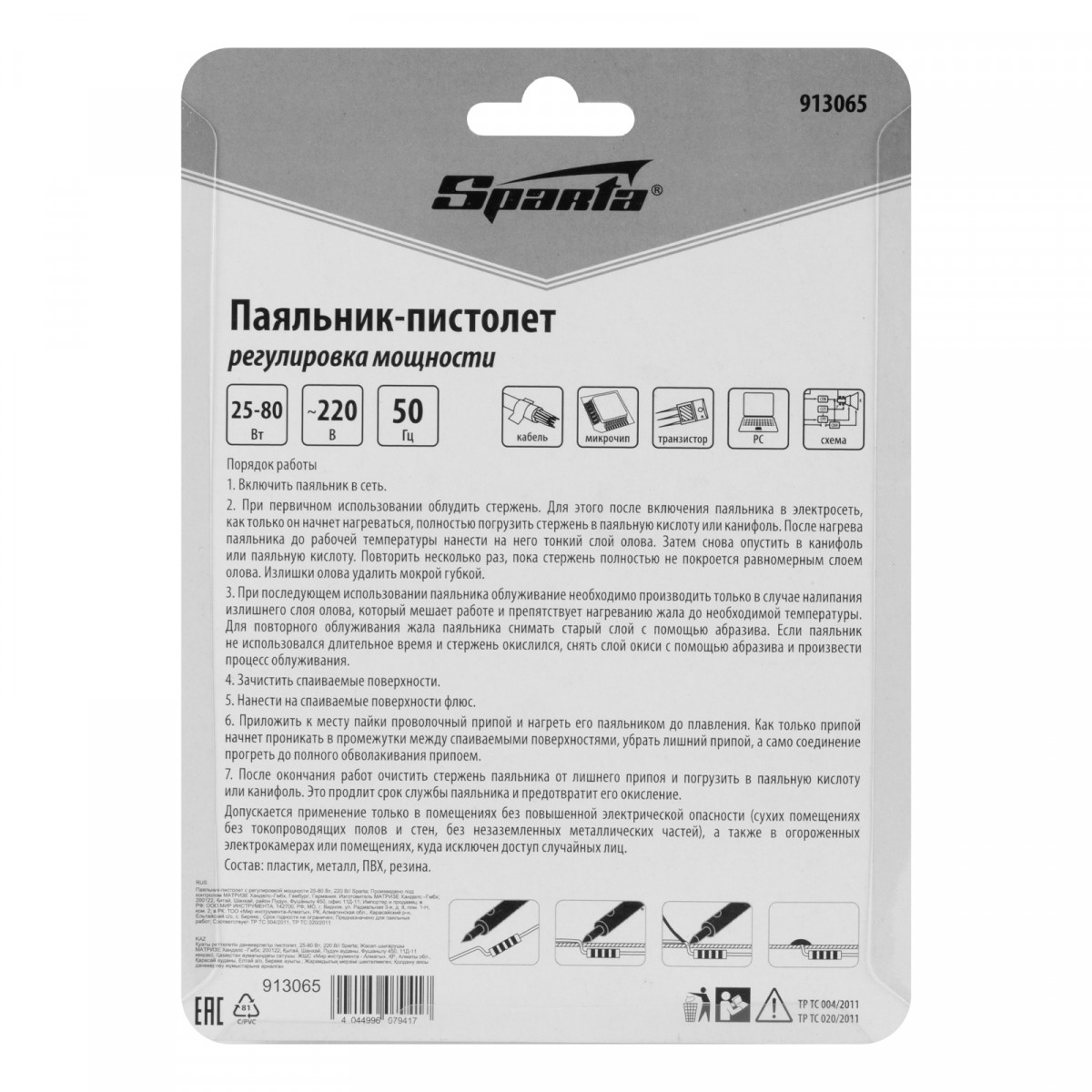 Паяльник-пистолет с регулировкой мощности 25-80 Вт, 220 В Sparta