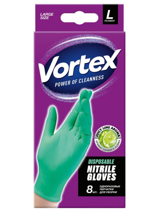 Перчатки нитриловые с ароматом лайма зеленые 8шт в упаковке VORTEX L