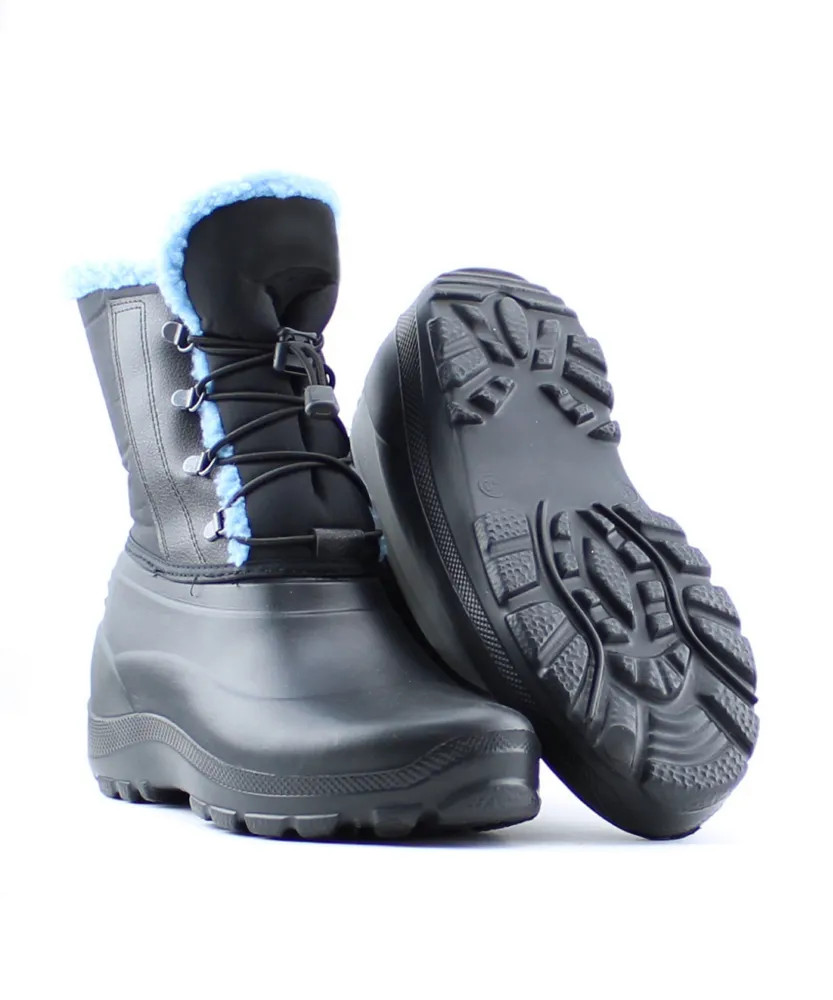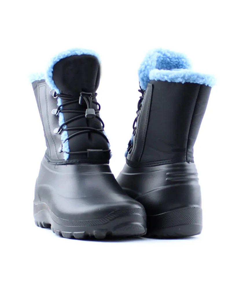 Полусапоги зимние женские из ЭВА с комбинированным верхом голубой+черный Дарина