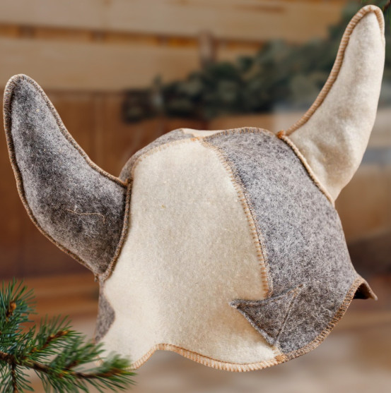 Шапка для бани и сауны комбинированная Шлем викинга войлок Добропаровъ