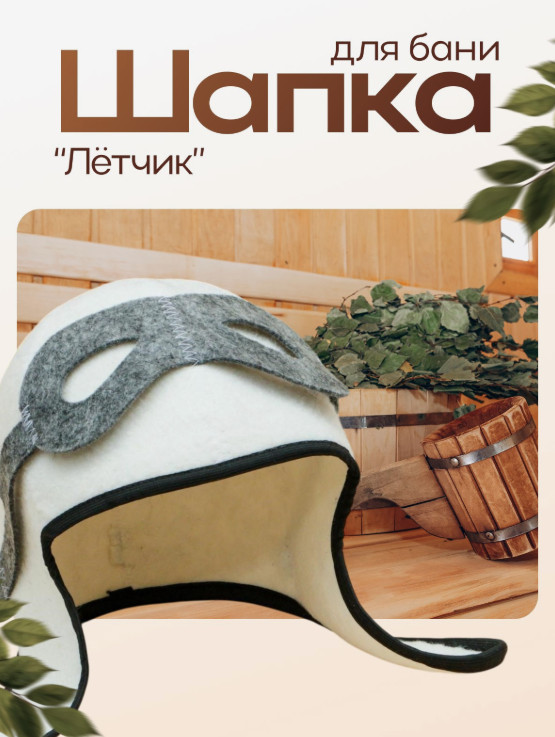 Шапка для бани и сауны Лётчик полиэфир 70% шерсть 30% белая Добропаровъ