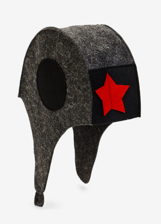 Банная шапка «Танкист» из шерсти и полиэфира — аксессуар с выразительным дизайном, который сочетает надежную защиту от перегрева с узнаваемым военным стилем.