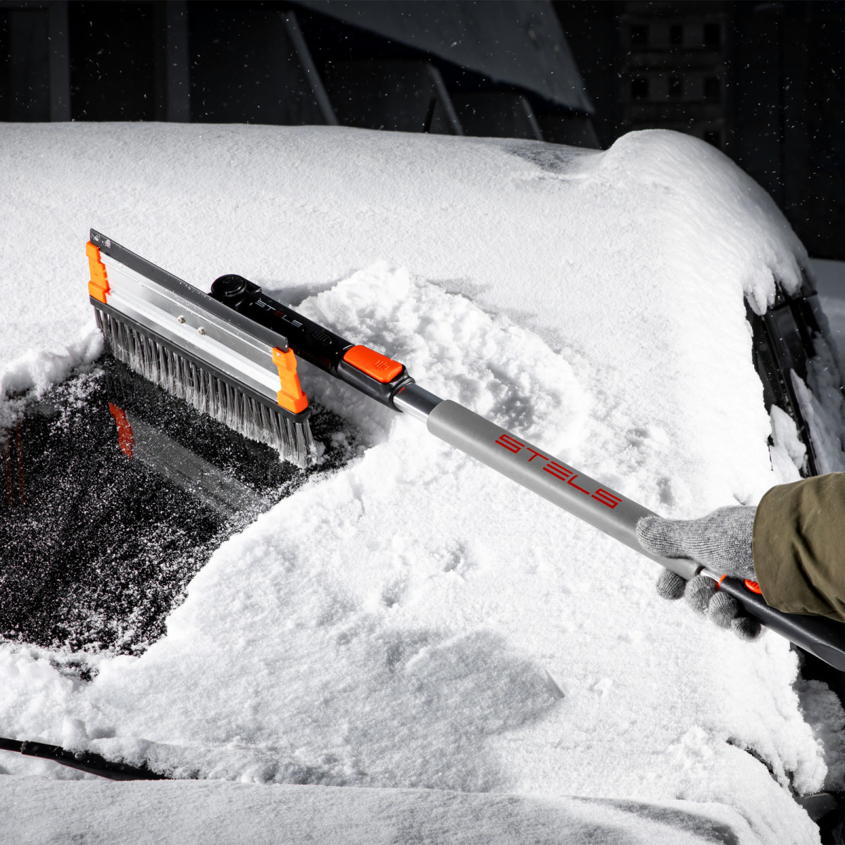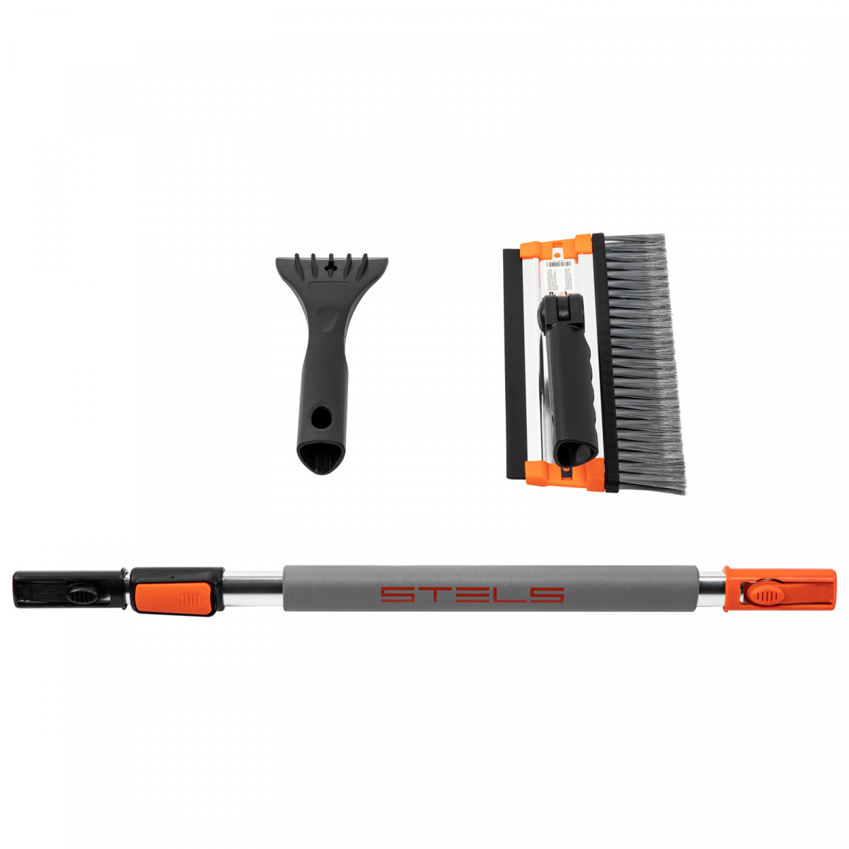 Телескопическая щетка-сметка для снега Stels 55299 со скребком и водосгоном, с поворотной головой, используется для очищения автомобиля от снега, наледи и воды. Благодаря рабочей части длиной 240 мм с плотной распушенной щетиной щетка эффективно и аккуратно удаляет слой снега с кузова, не царапая его. Скребок шириной 250 мм быстро удаляет наледь, а зубья дробят толстую корку льда. Щетка со скребком пригодится владельцам автомашин.
