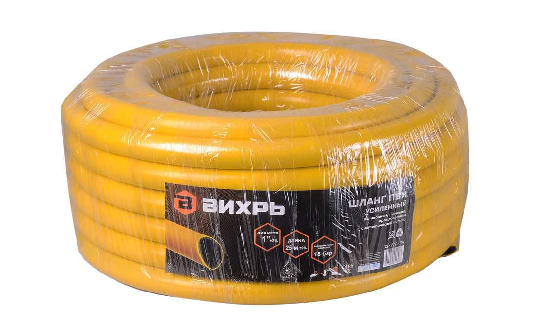 Шланг поливочный ПВХ усиленный пищевой трехслойный армированный 1" 25м желтый ВИХРЬ
