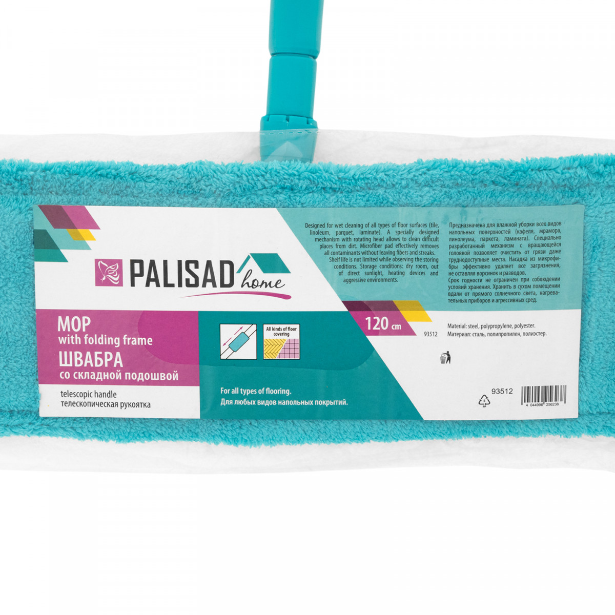 Швабра Palisad Home 93512 с телескопической рукояткой длиной 680-1205 мм, складной подошвой и насадкой из микрофибры, предназначена для проведения влажной уборки. Подходит для всех видов напольных покрытий: кафеля, мрамора, паркета, линолеума и ламината. Благодаря механизму с вращающейся головкой получится очистить даже труднодоступные места. Швабра с насадкой из микрофибры размером 430 x 130 мм оптимальна для уборки квартиры, частного дома, небольшого офиса.
