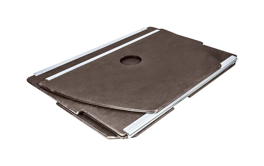 Разборная слань с алюминиевыми профилями - наиболее распространенный тип фанерных сланей для лодок ПВХ. Пазо-гребневый тип соединения в сочетании со стрингерами, повышающими продольную жесткость пола, делают такую слань монолитной конструкцией. Слань для лодки Ривьера 3200 СК изготавливается компанией "Мастер лодок" из влагостойкой ламинированной фанеры, толщиной 9 мм. Состоит из четырех секций, соединяющиеся между собой полноразмерными А-профилем и Н-профилем. Имеет отверстие под клапан киля, отверстие для доступа к сливному клапану и выпилы под стрингеры.