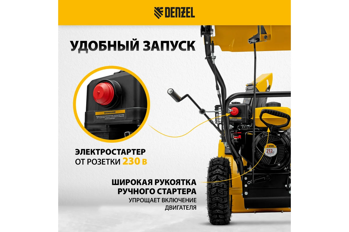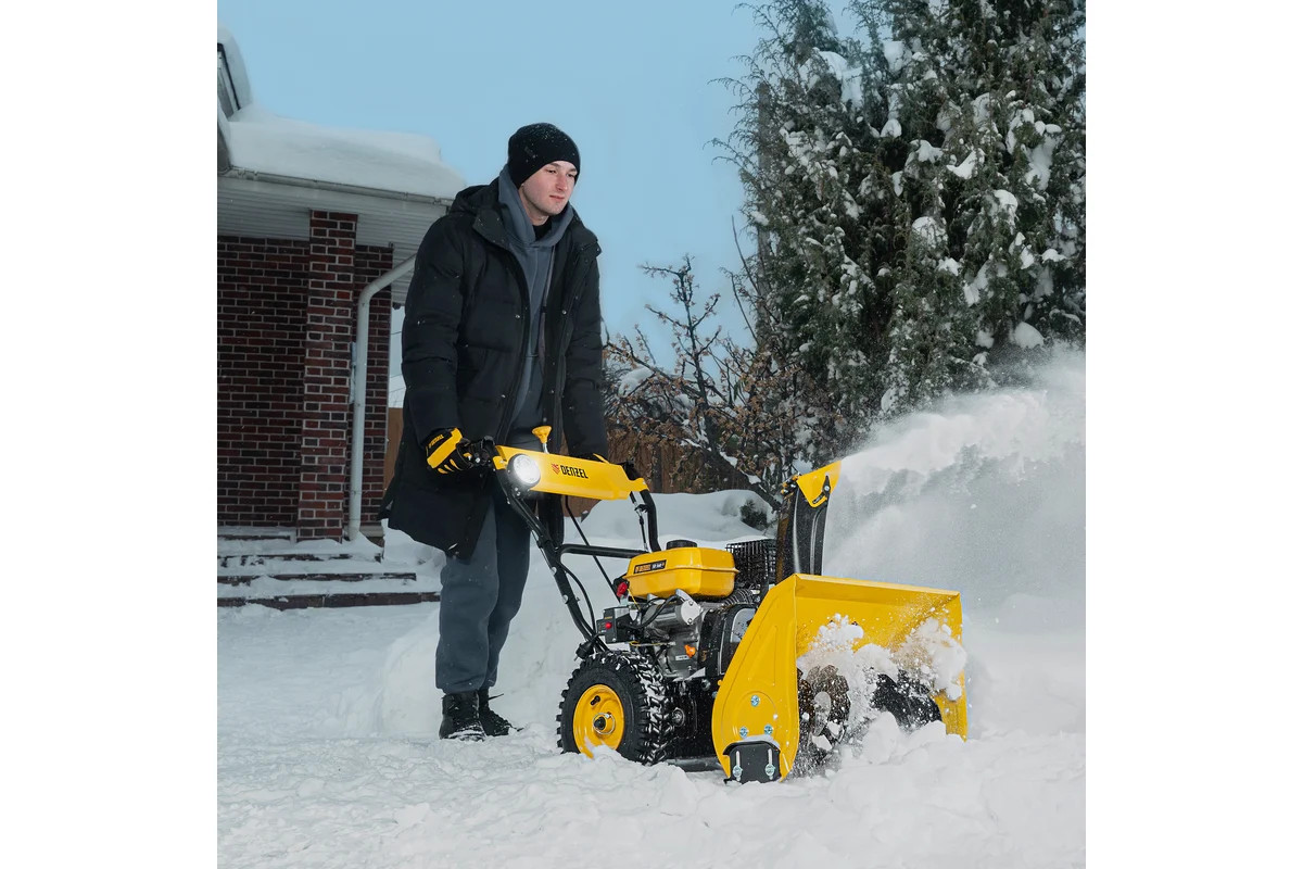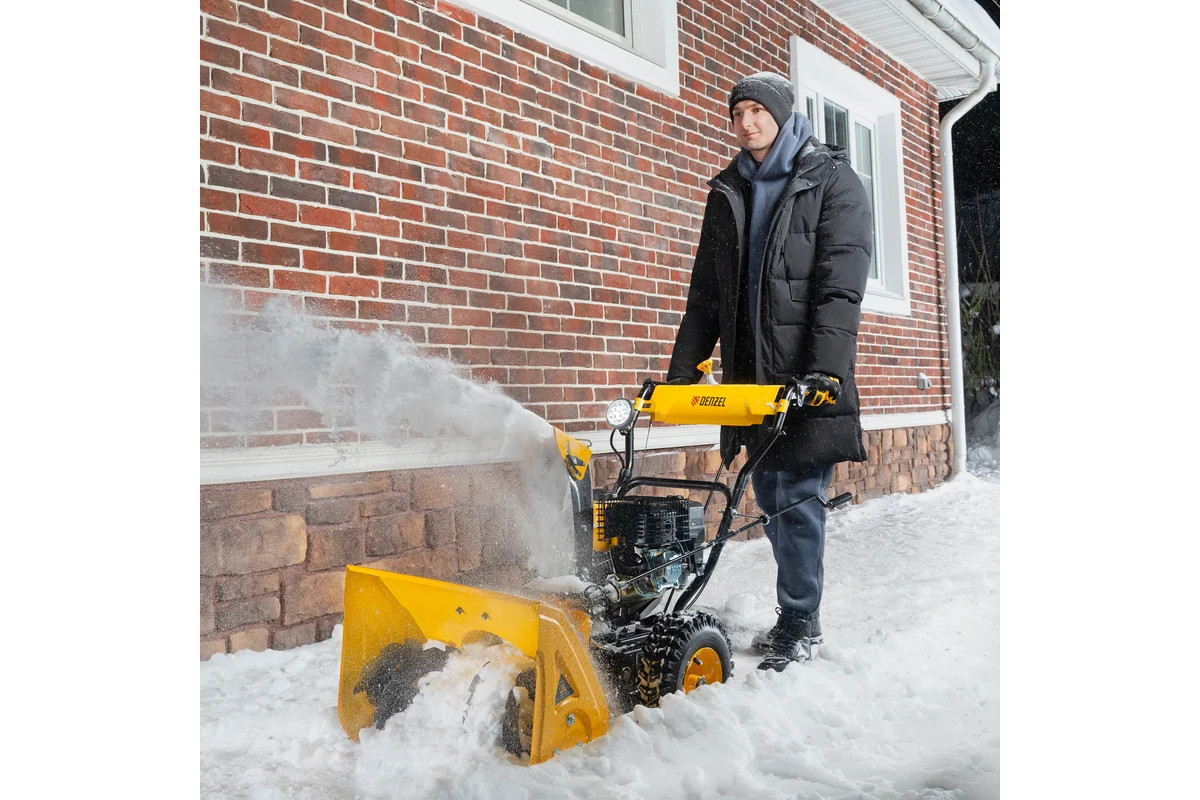 Бензиновая снегоуборочная машина Denzel SB 560 LP 97652 предназначена для расчистки дачных участков, придомовой территории, парковок, дорожек и других заснеженных территорий. Ресурсный двигатель объемом 212 куб.см с высоким крутящим моментом и кожух шнека шириной 560 мм обеспечивают эффективную уборку снега. Снегоуборщик относится к самоходному типу с двухступенчатой системой забора снега. Электростартер обеспечивает запуск двигателя при низких температурах. Яркая LED фара облегчает работу в темное время суток. Благодаря шинам с глубоким протектором исключается пробуксовка на обледенелой дороге.