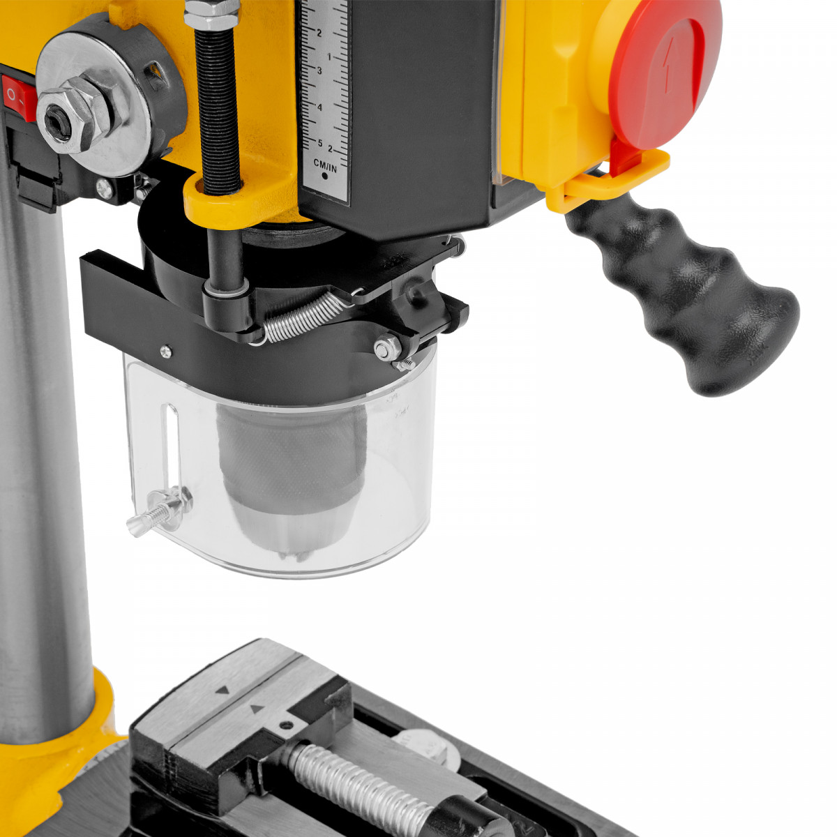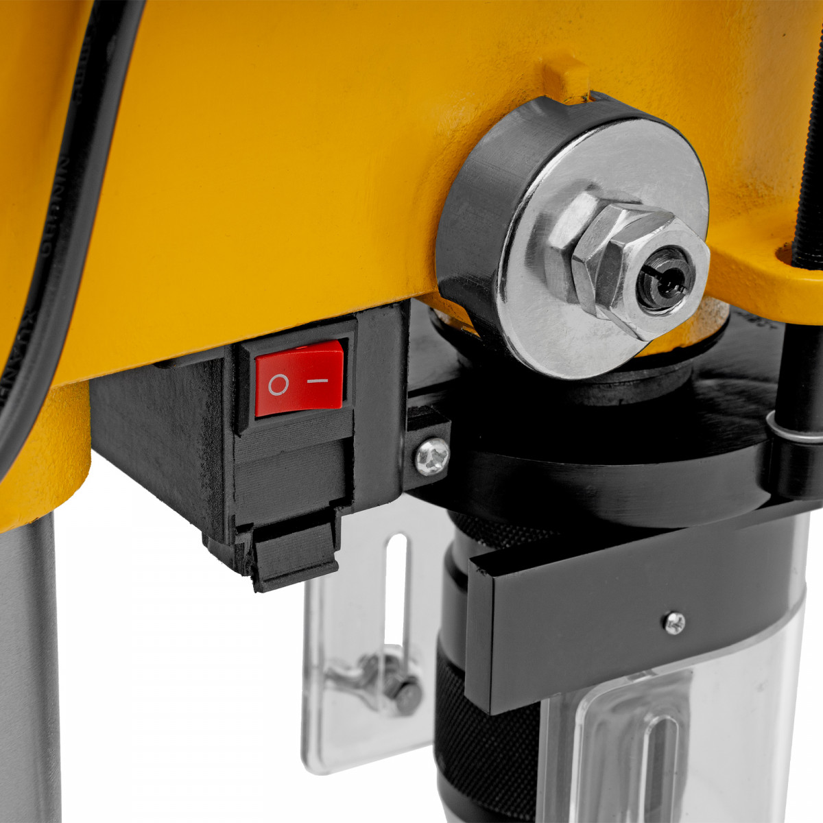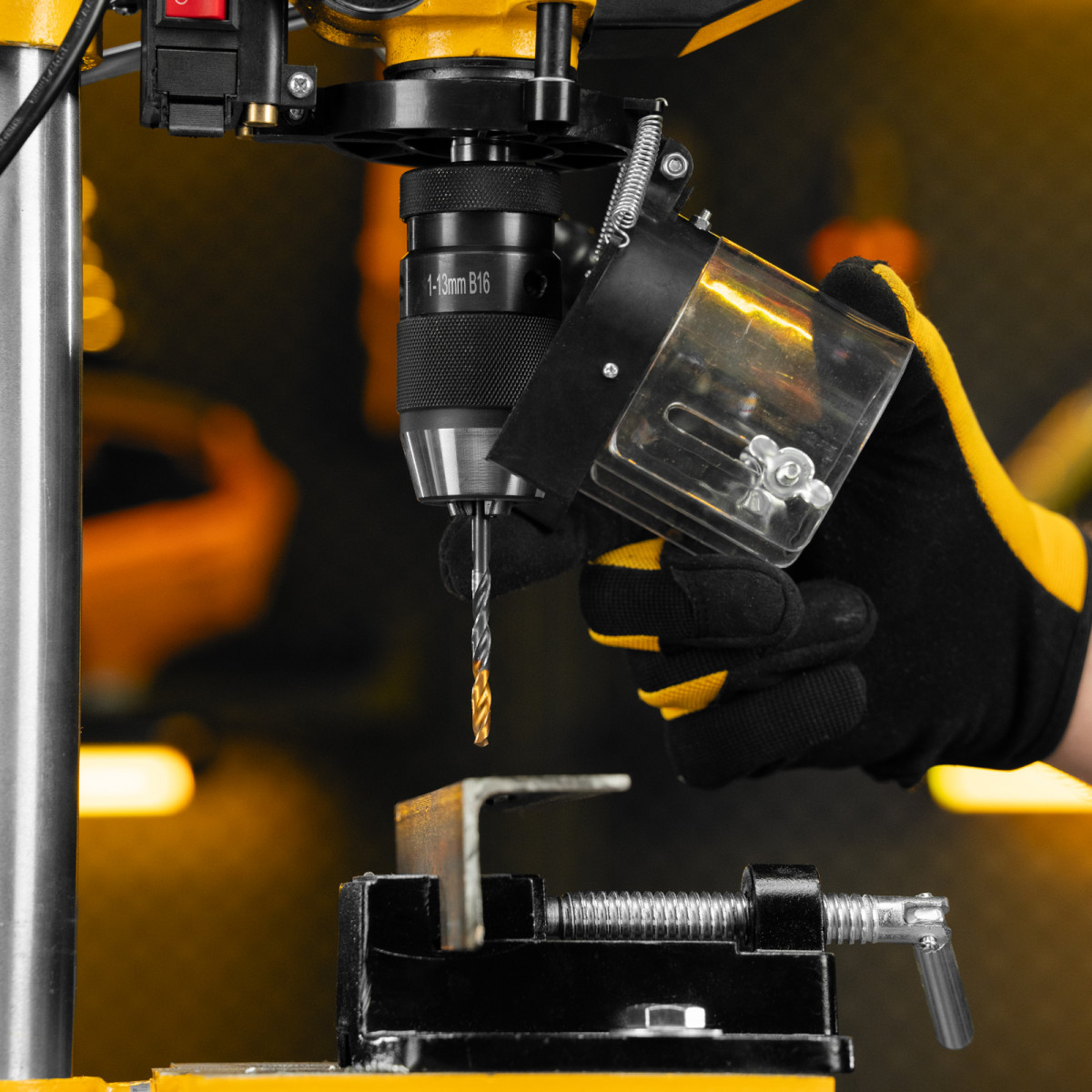 • Безопасность пользователя — прозрачный кожух защищает от вылетающей стружки во время сверления.