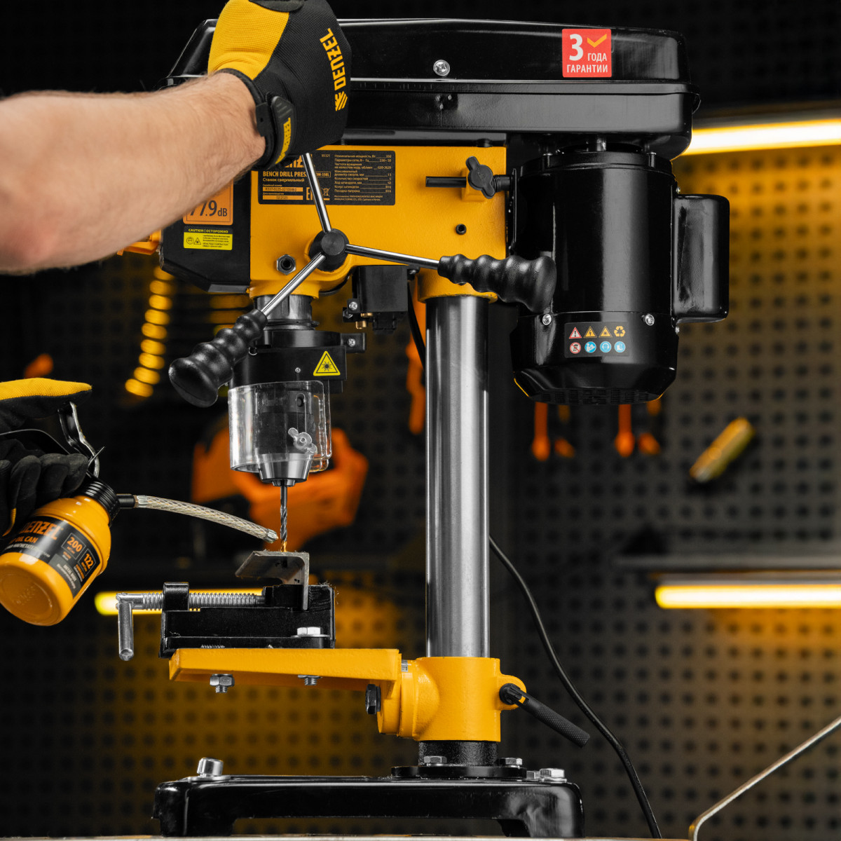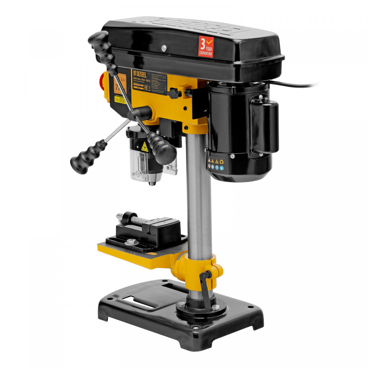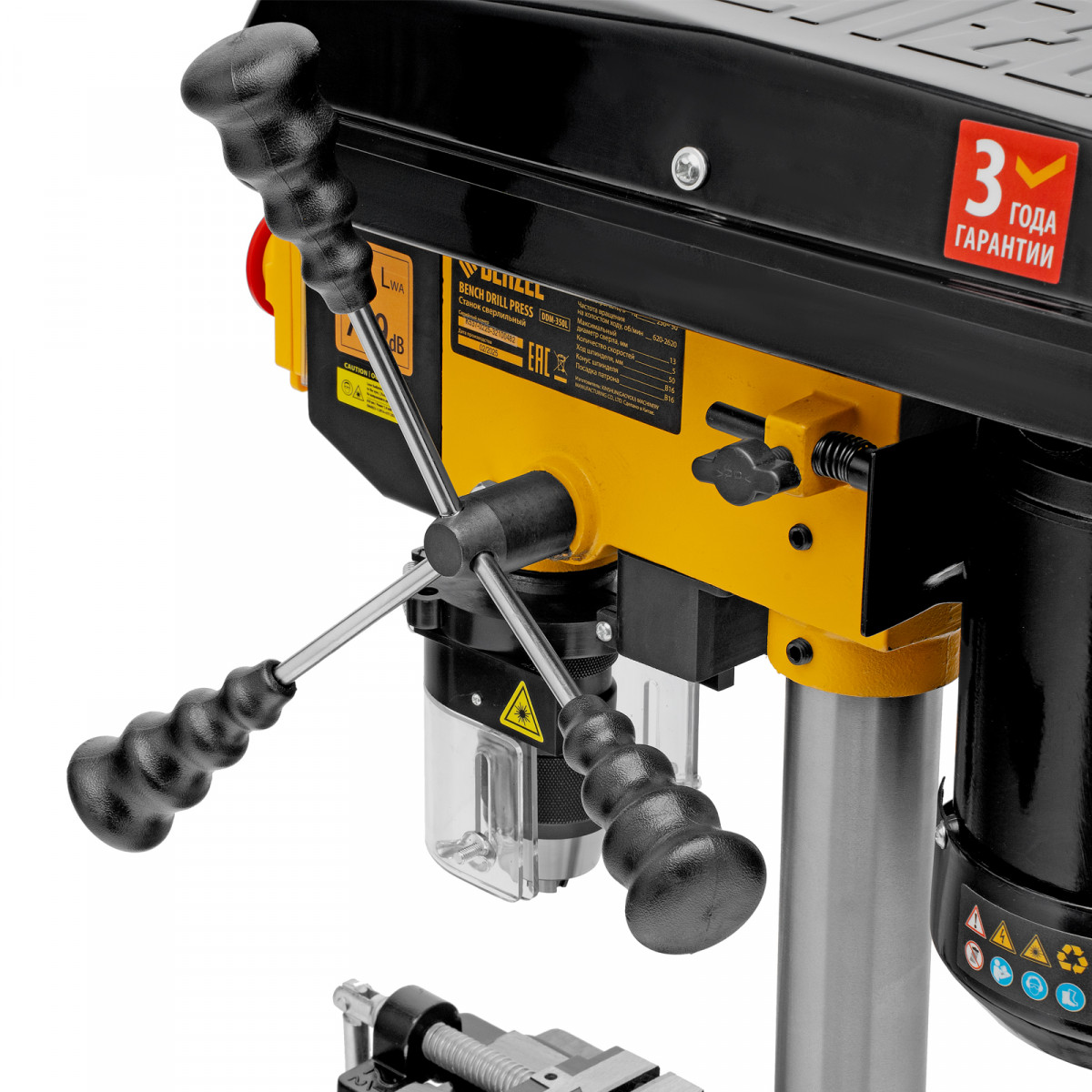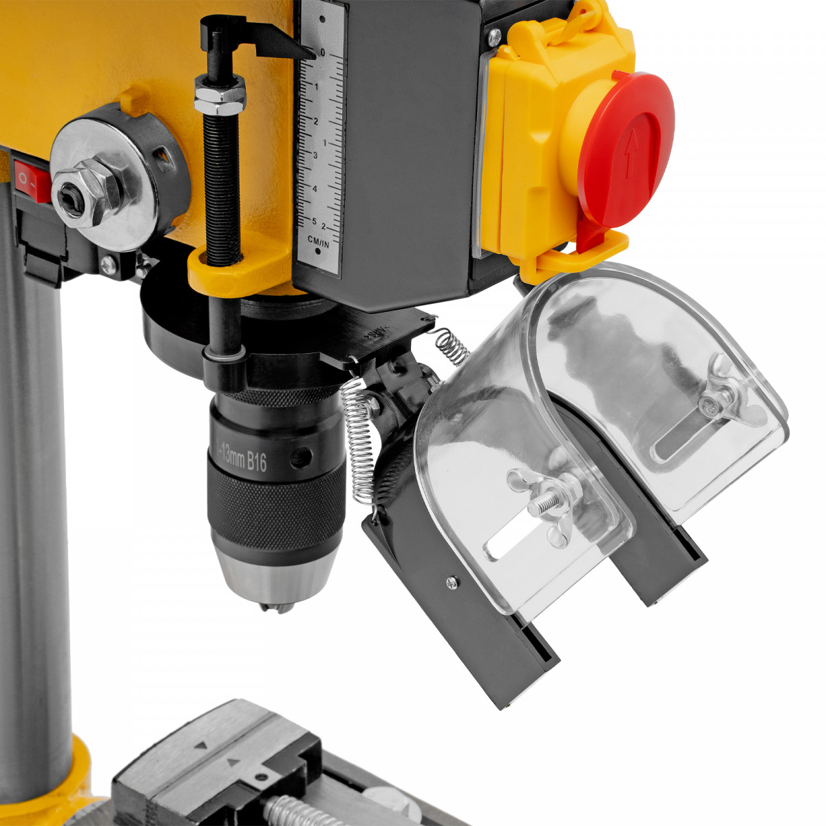 • Безопасность пользователя — прозрачный кожух защищает от вылетающей стружки во время сверления.