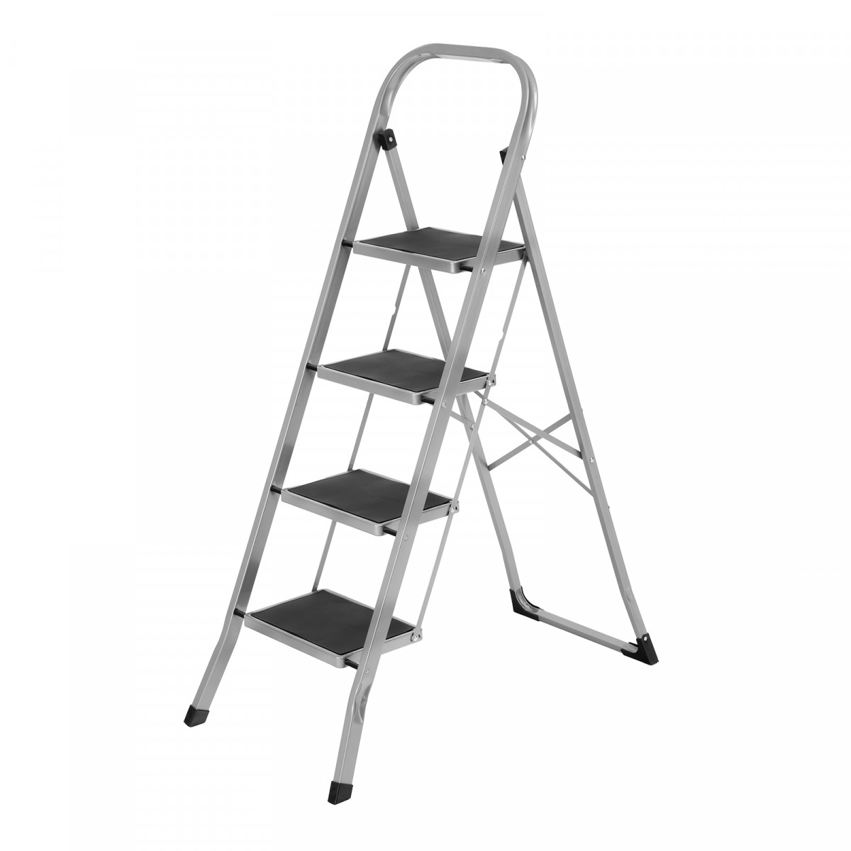 Стальная стремянка Сибртех 97728 с 4 широкими ступенями размером 20 x 30 см, с полимерным покрытием, позволяет выполнять различные работы на высоте, превышающей человеческий рост. С ее помощью можно достать нужный предмет с полки, покрасить стену, поменять лампочку, вытереть пыль на шкафу и т.д. Верхняя ступень находится на высоте 88 см от опорной поверхности, рабочая высота составляет 288 см (при среднем росте пользователя 170 см). Дуга безопасности и широкие ступени с нескользящим покрытием обеспечивают устойчивое положение пользователя. Стремянку следует размещать на ровной поверхности и использовать для работы только с ручным инструментом.