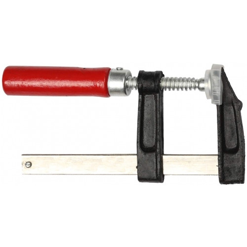 Струбцина F-образная 120х500 мм состоит из рамы и подвижной части с винтовым зажимом. Применяется для слесарных работ, например, при обработке деталей. Для защиты от повреждения хрупких материалов предусмотрен пластмассовый колпачок. Рукоятка струбцины обеспечивает удобное управление.