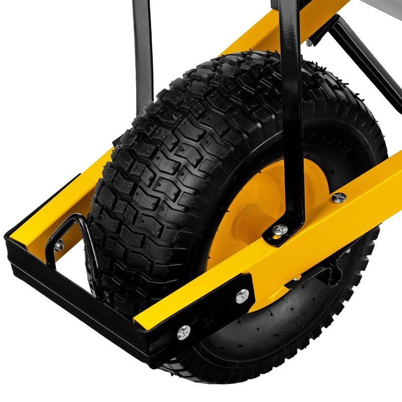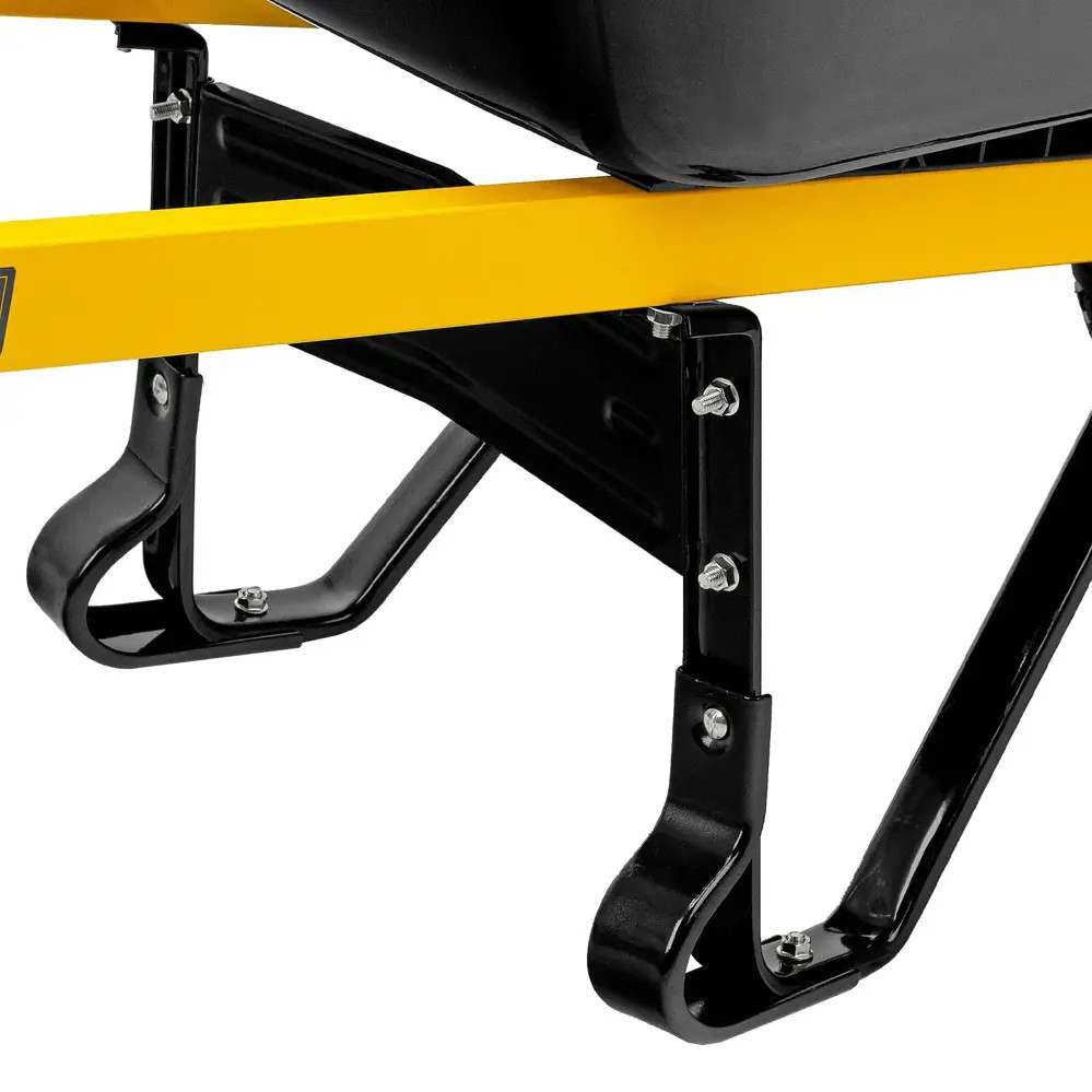 - Дуга вокруг переднего колеса служит упором при фронтальной разгрузке, проушина позволяет осуществлять буксировку тяжело нагруженной тачки вторым человеком