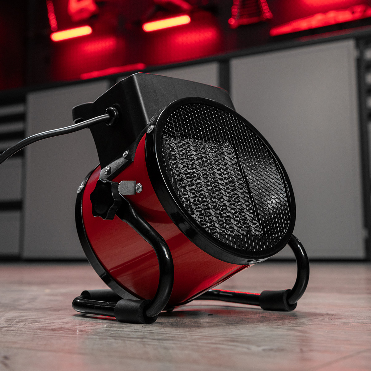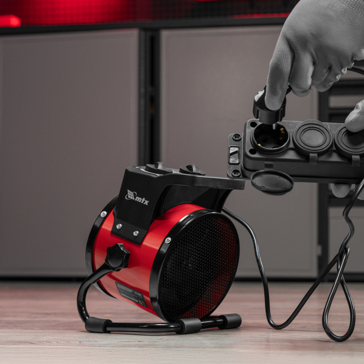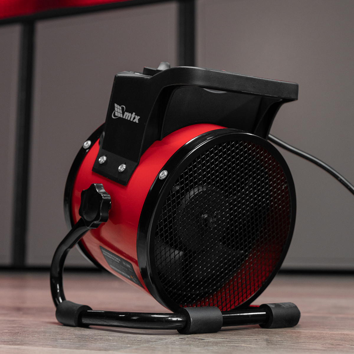 - Эргономичность — компактная тепловая пушка весит 1,4 кг, удобная рукоятка упрощает перемещение.