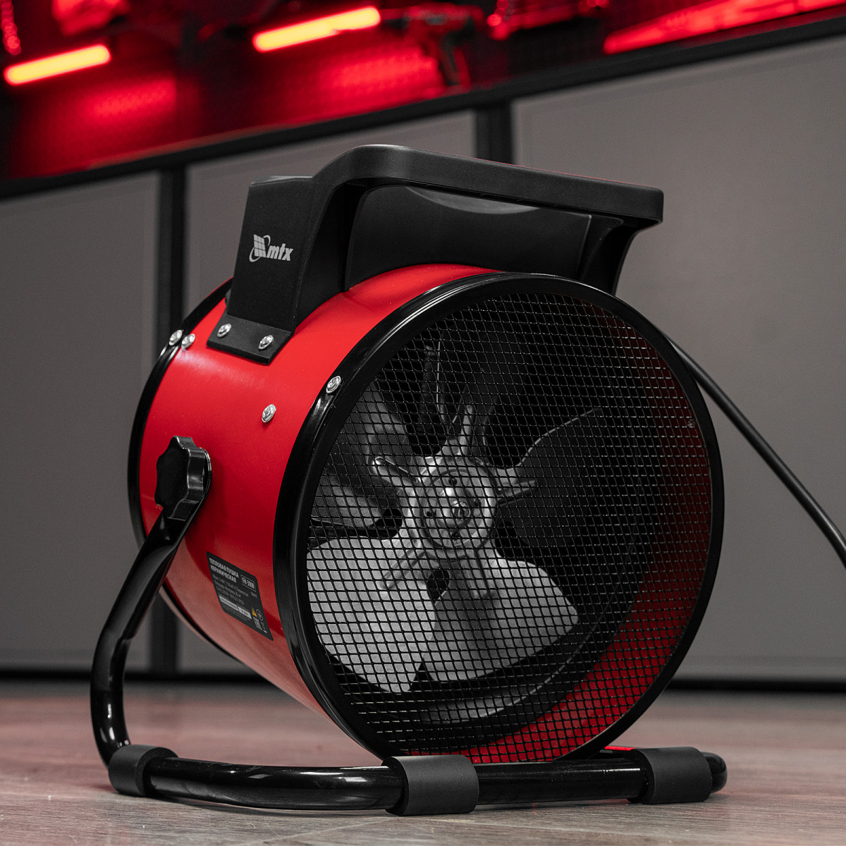 Керамическая тепловая пушка MTX FH-3000 98402 с термостатом, максимальной мощностью 3 кВт, работает в 3 режимах и предназначена для обогрева складов, мастерских и других нежилых помещений площадью до 30 м2. Также может использоваться для быстрой просушки различных поверхностей, например, стяжек пола, оштукатуренных и окрашенных стен.
