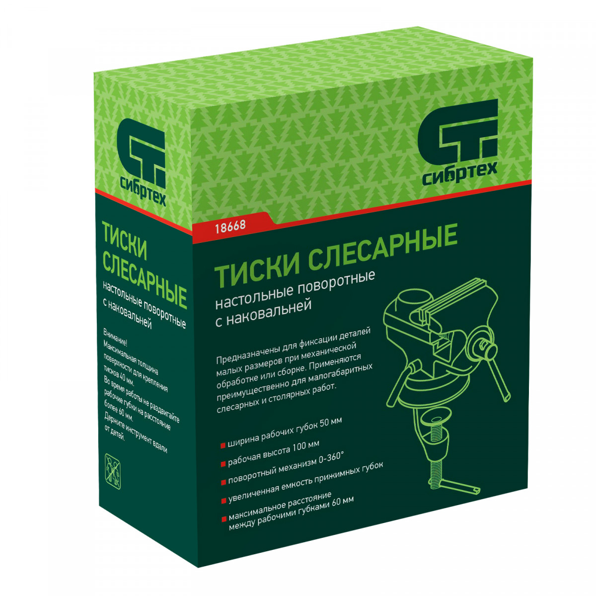 Тиски слесарные, настольные, поворотные, ширина рабочих губок 50 мм, наковальня Сибртех