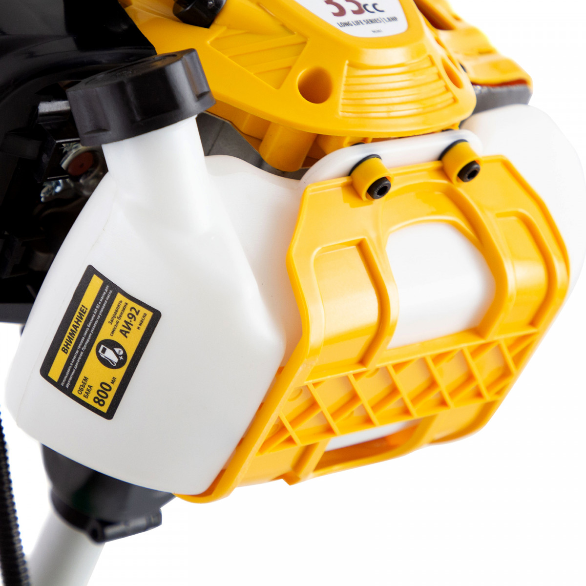 • Удобное приготовление топливной смеси — дозатор для смешивания бензина и масла прилагается к триммеру.