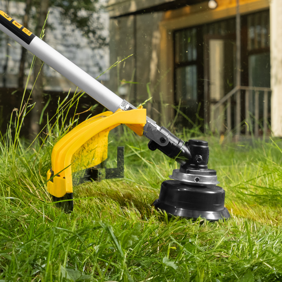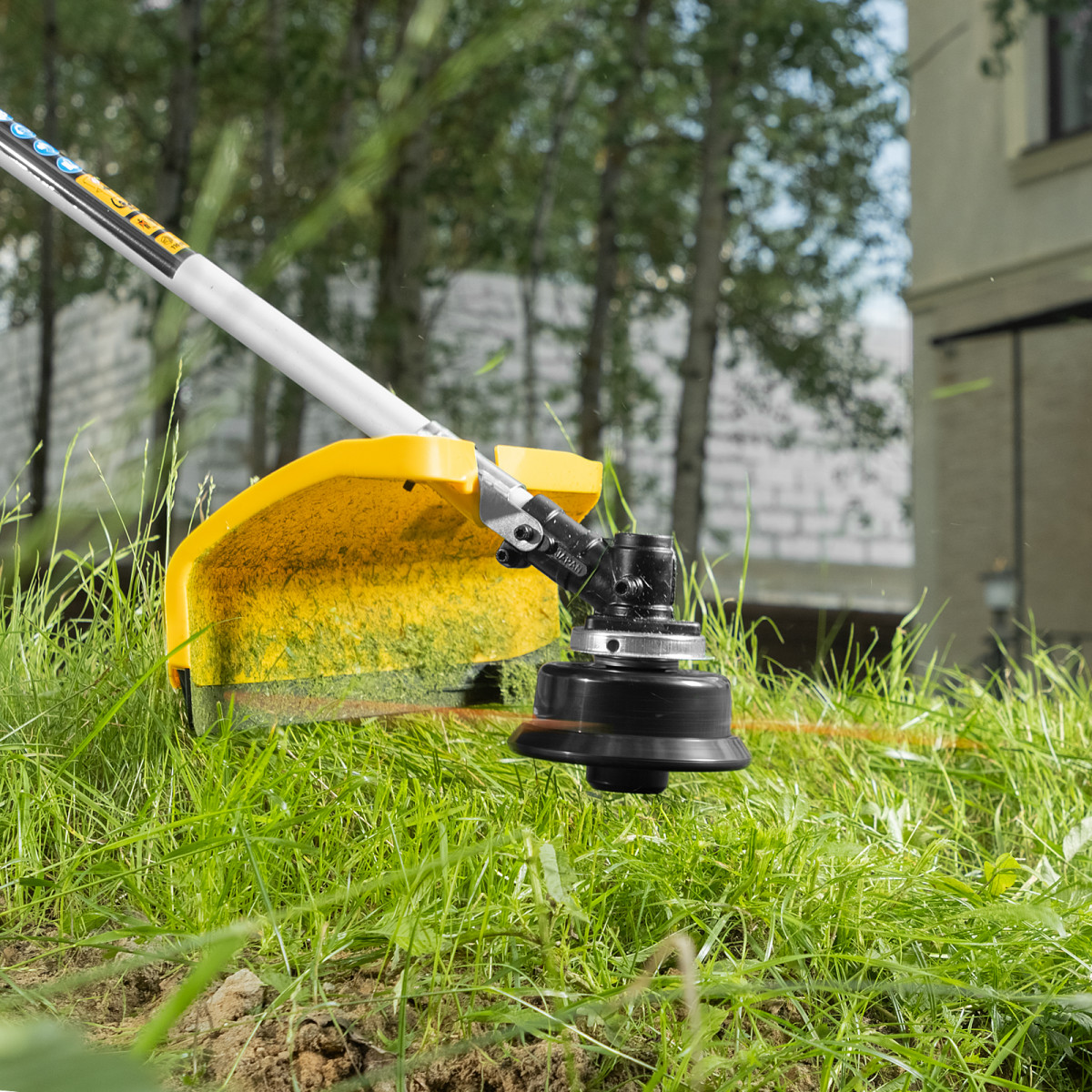 • Автоматическое укорачивание лески — в случае, если длина корда превышает допустимую, лезвие на кожухе триммера подрезает его, предотвращая лишнюю нагрузку на двигатель и его перегрев.