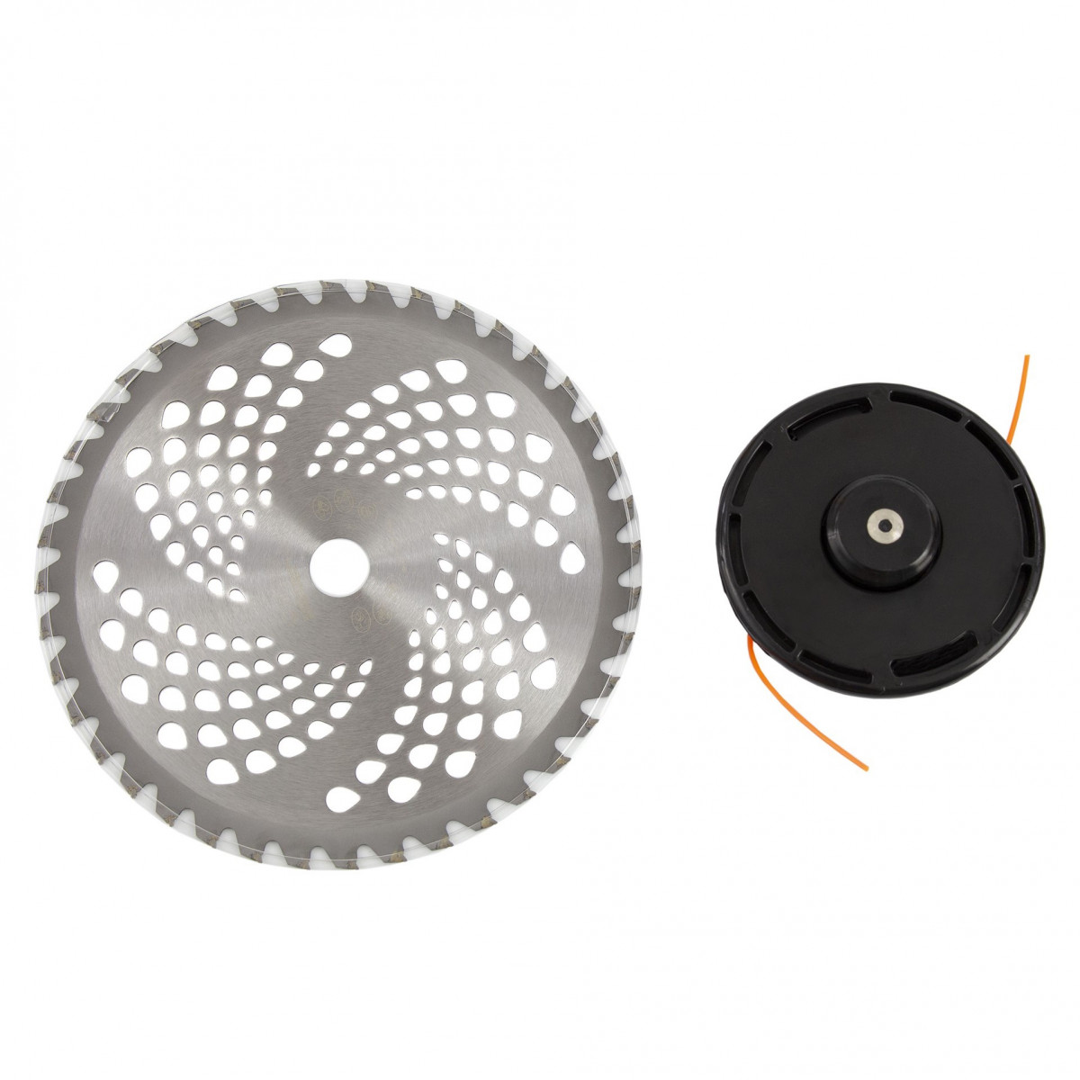 • Дополнительные возможности — можно приобрести и установить на триммер диски Denzel 96323, 96325 для быстрого удаления растительности с жесткими стеблями (полыни, крапивы, лебеды) или 96328 для скашивания молодых побегов кустарника диаметром до 3 мм.