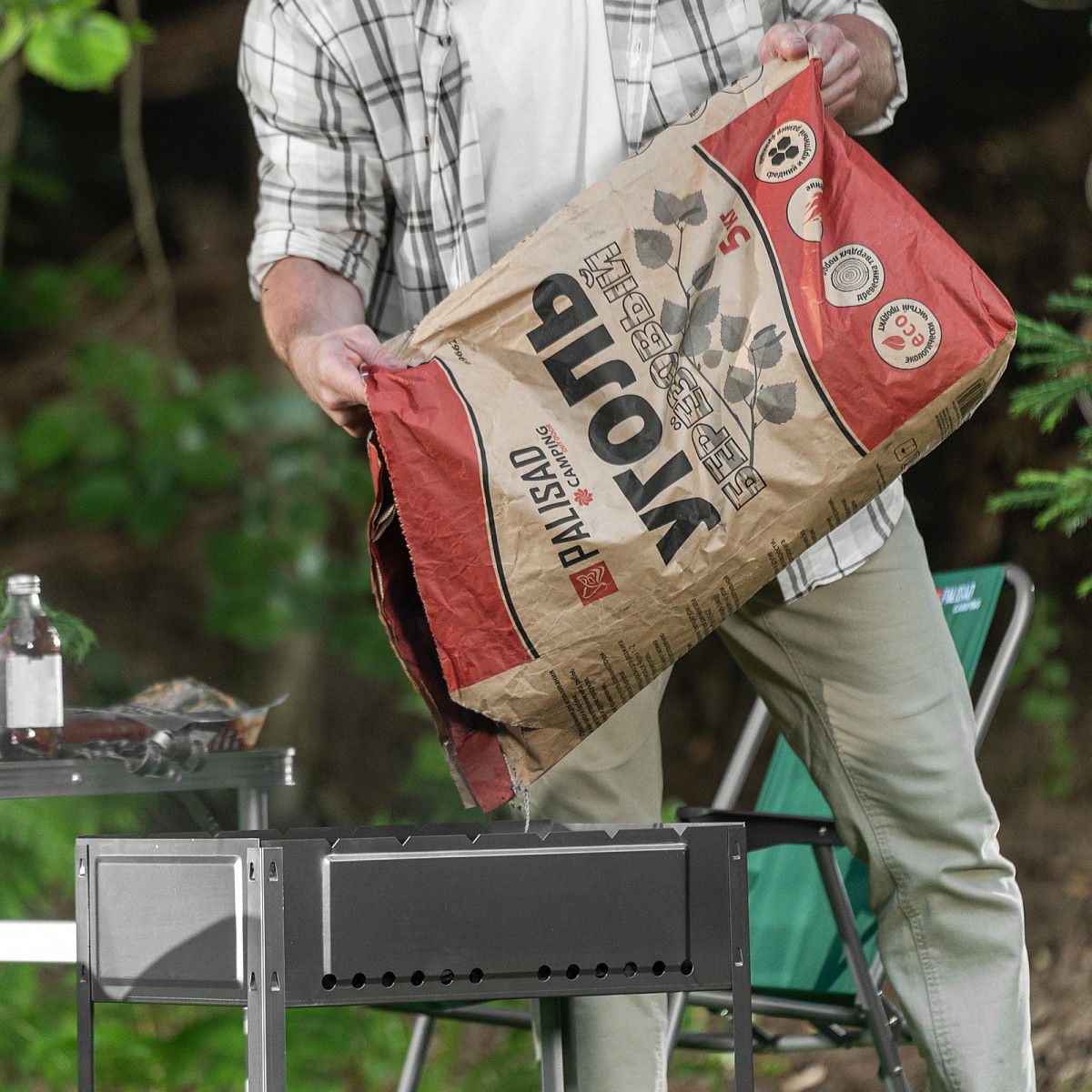 Березовый уголь Palisad Camping 69662, объем упаковки 5 кг, используется в качестве топлива для приготовления пищи на открытом воздухе: с помощью мангала, гриля или барбекю. Пакета хватит для небольшой компании на даче или пикнике.